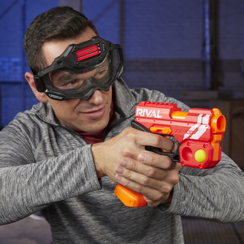 Любителям командных игр обязательно понравятся компактные бластеры Нерф Райвал Нокаут XX-100. Выберите сторону и отправляйтесь в бой за красную иил синюю команду! Высокая интенсивность стрельбы и миниатюрные размеры приведут вас к победе. Бластер отлично подходит для активных боев в небольших пространствах и атак из укрытия. Загрузите 1 шарик Нерф Райвал в ствол, потяните рукоять и нажмите на спусковой крючок, чтобы сделать выстрел. На корпусе бластера расположены углубления, в которых можно хранить два запасных шарика для быстрой перезарядки. Спусковой крючок оснащен механизмом блокировки, позволяющий предотвратить случайный выстрел.