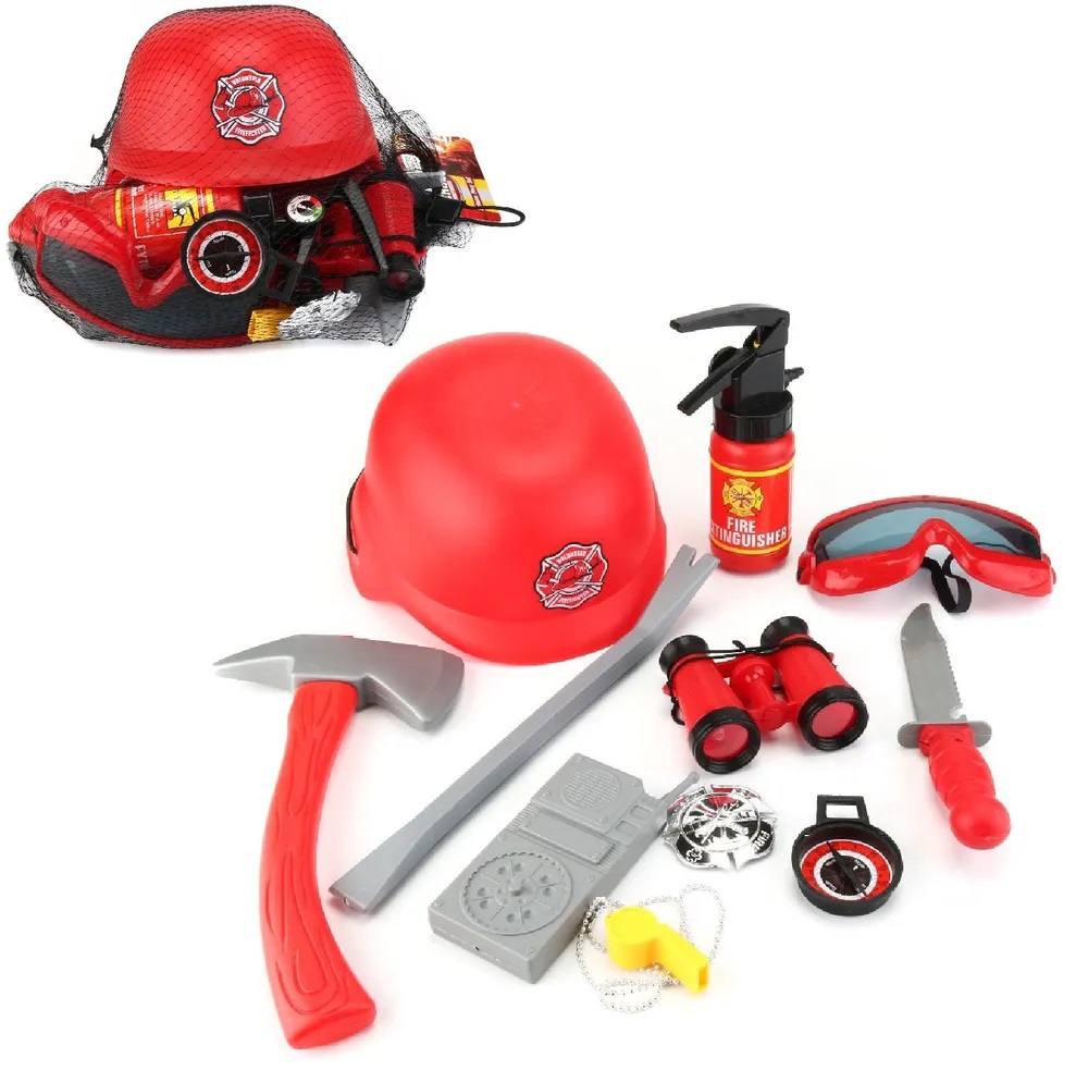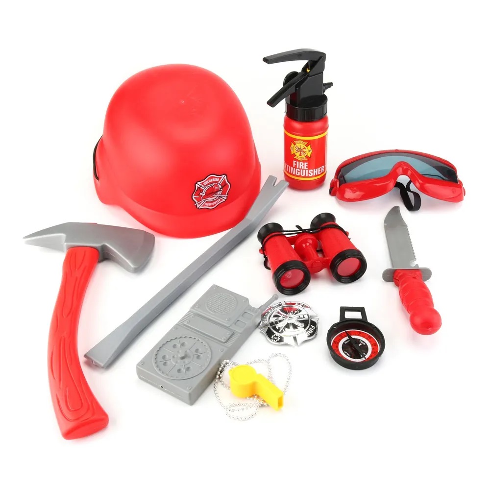 в комплекте каска пожарного и множество тематических аксессуаров,