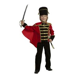 Гусар 409 - карнавальный костюм из бархата для мальчика из коллекции ЗВЕЗДНЫЙ МАСКАРАД. В комплект входят красный мундир, черные брюки, кивер, красный плащ и сабля. Если вашему ребеноку с детства присущи такие четры характера, как доблесть, смелость и честолюбие - покупайте этот костюм ему на карнавальную вечеринку. Не пожалеете.