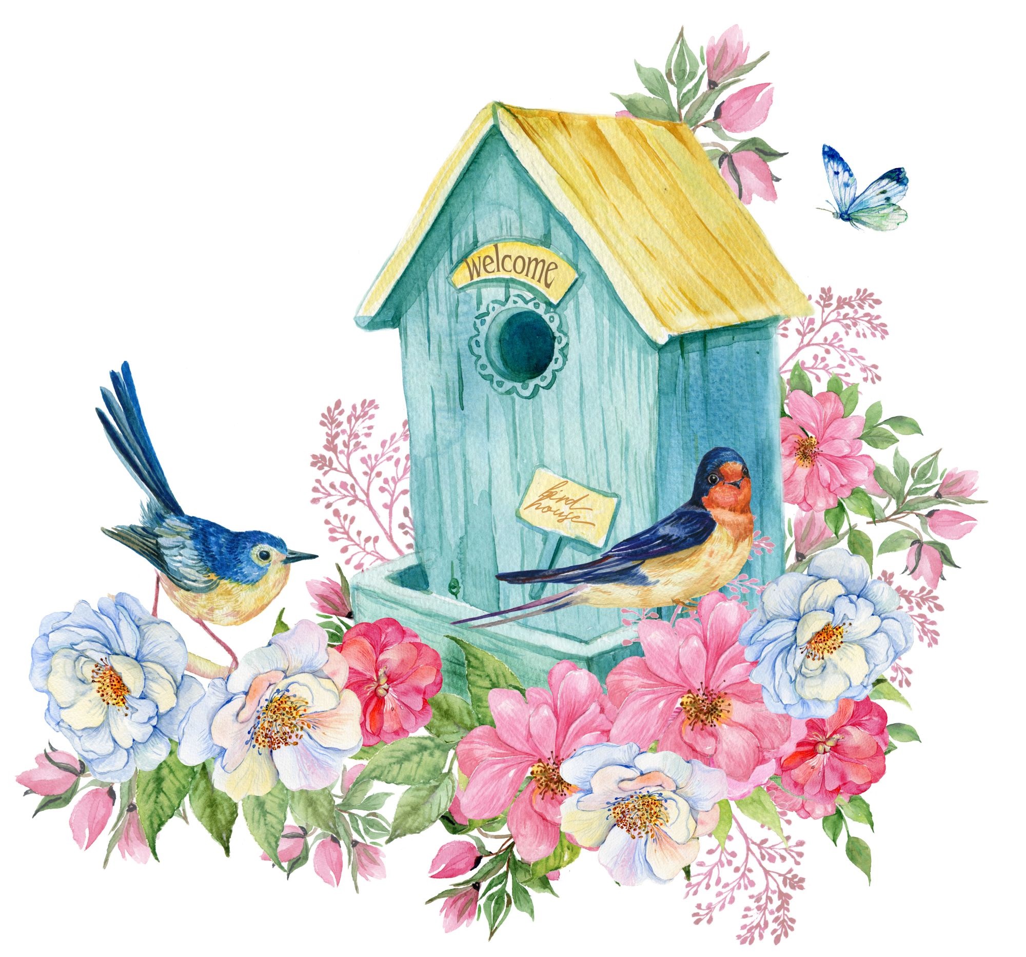 Алмазная мозайка "Птички у домика" 20*20 см