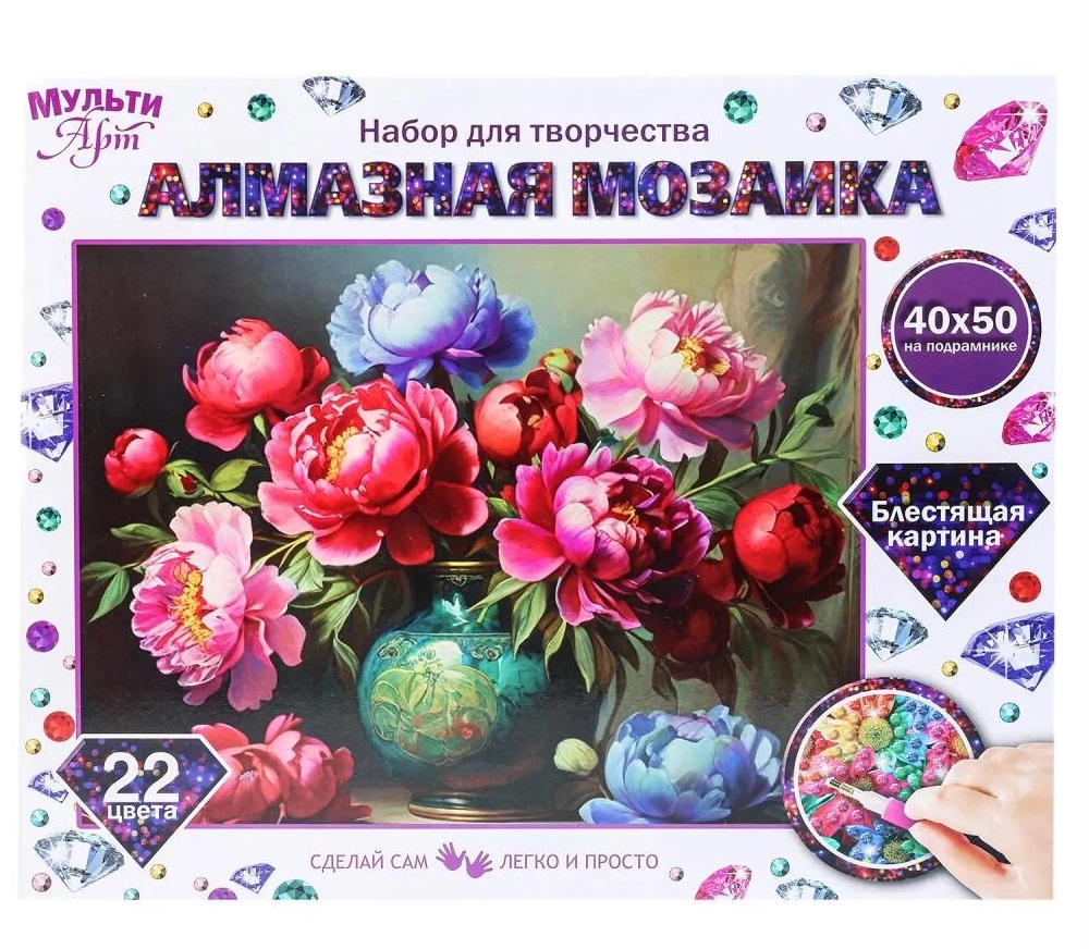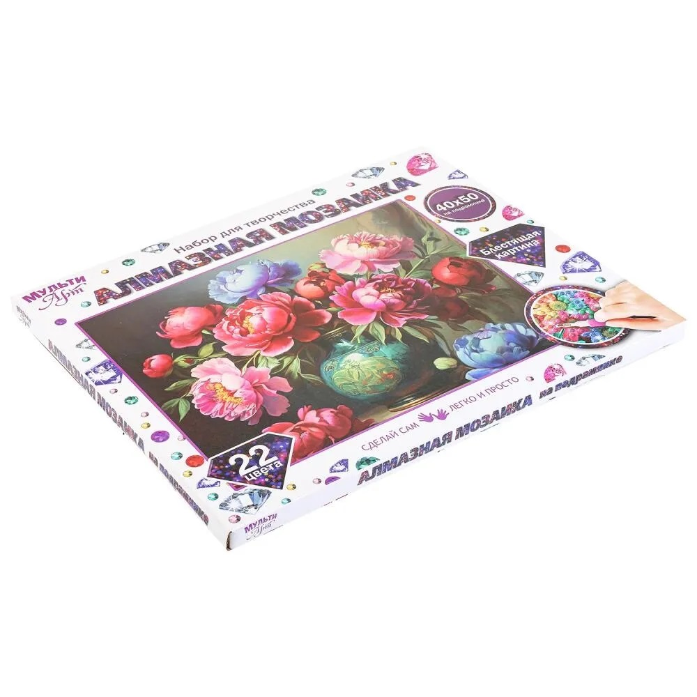 Набор для творчества (аппликация/мозаика) МУЛЬТИ АРТ AM40X50-117406. Набор для детского творчества – алмазная мозаика «Ваза с цветами» ТМ «Мульти Арт» - отличный подарок для ребенка, который будет способствовать развитию его творческих способностей.
