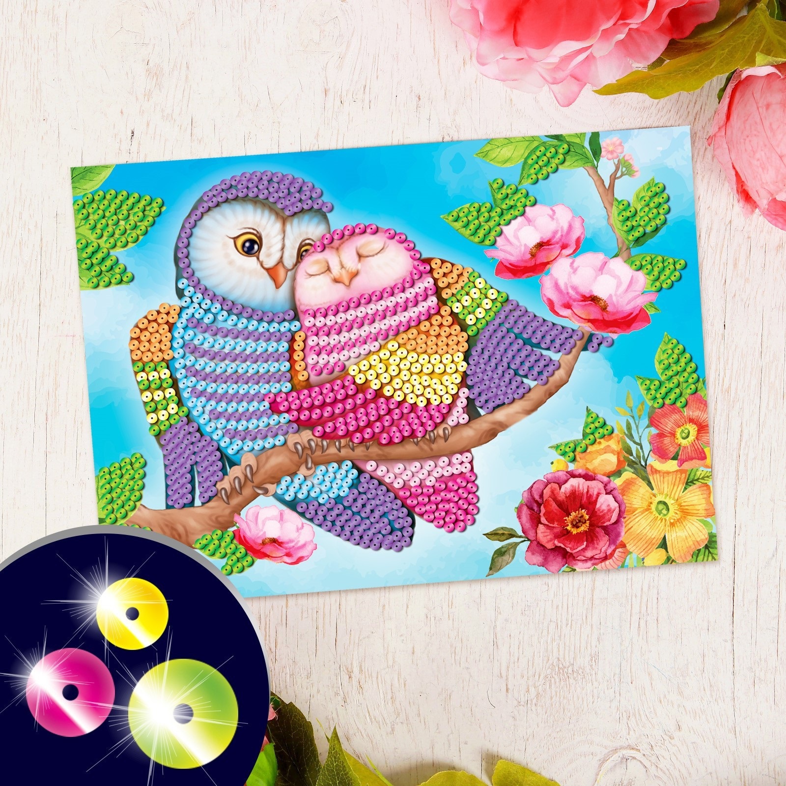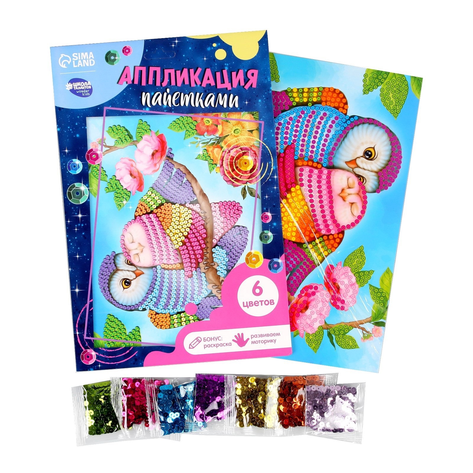 Мозаика пайетками "Совушки"+ 6 пак.пайеток