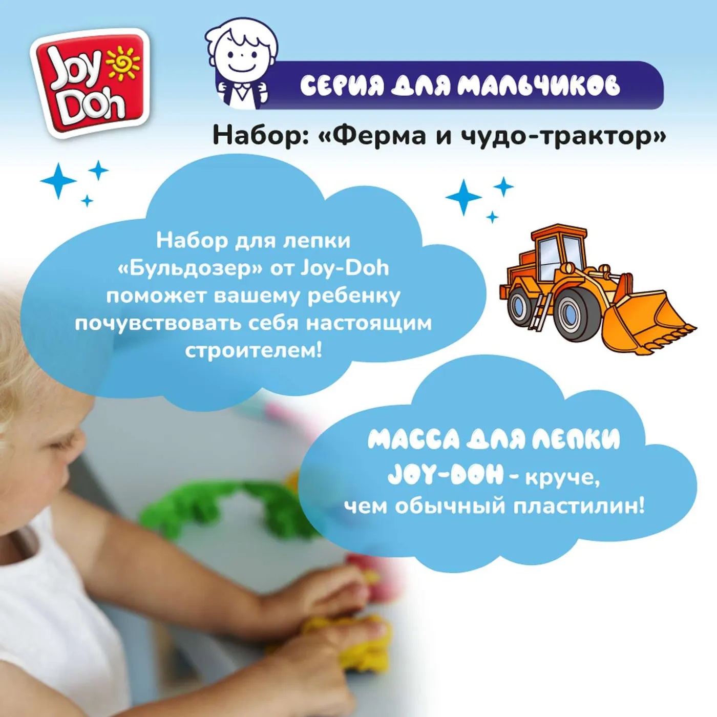 Ваш малыш любит строить? Набор для лепки «Bulldozer» от Joy-Doh подойдет маленьким экспертам, разбирающимся в строительной технике. Яркий бульдозер с ковшом и подвижными колесами не оставит равнодушным вашего ребенка. С помощью пластмассовых аксессуаров можно слепить кирпичи и построить дом, а дорожные знаки и ограждения совсем как на настоящей стройке. Масса для лепки Joy-Doh - круче, чем обычный пластилин! С Joy-Doh весело лепить!