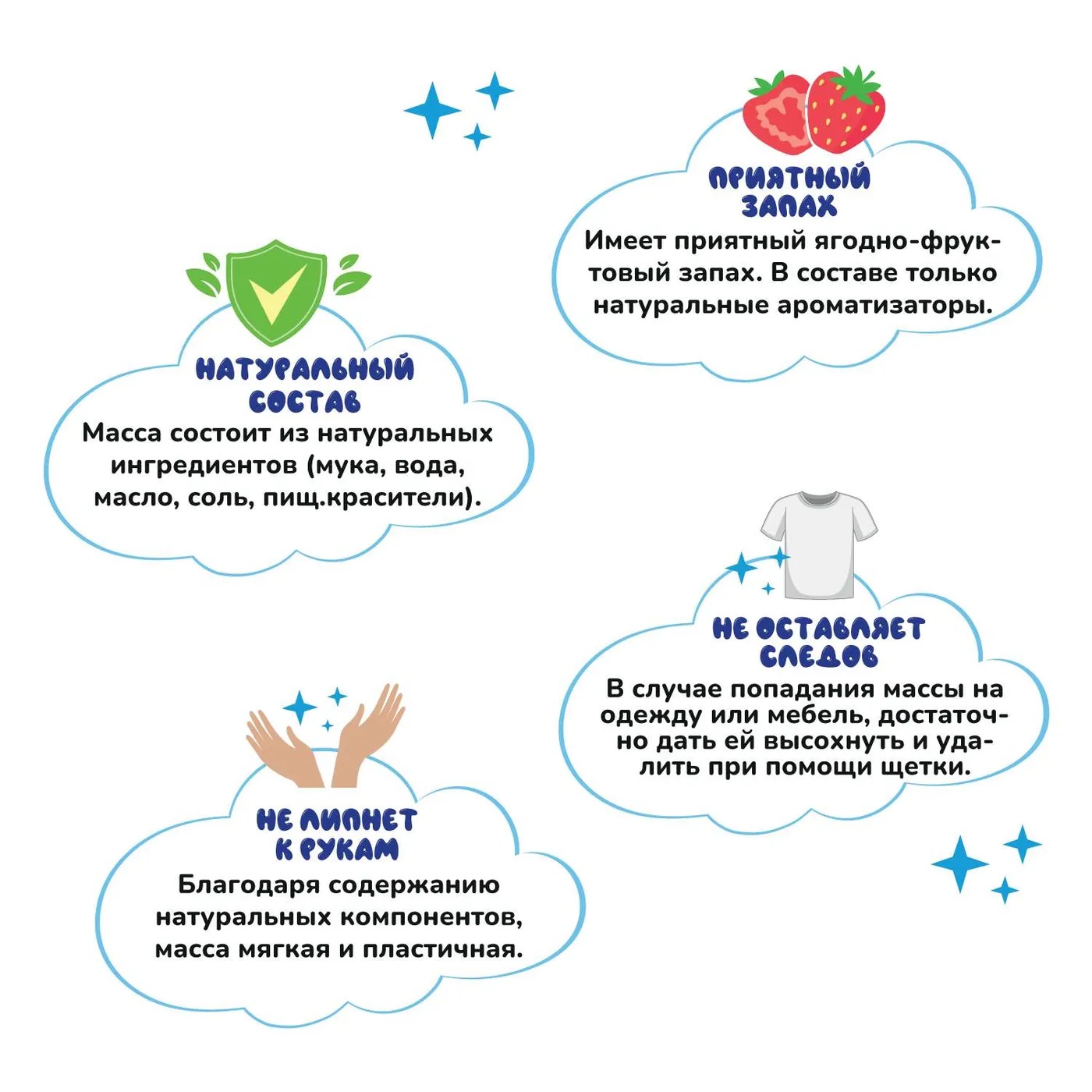 - тесто не пачкает руки и не оставляет пятен на одежде;