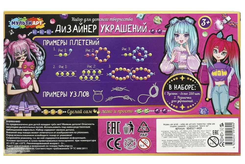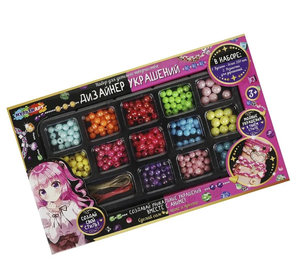 Набор для творчества МУЛЬТИ АРТ BEADSET-ANIM. Набор для детского творчества «Дизайнер украшений. Аниме» ТМ «Мульти Арт» - отличный подарок для маленьких модниц: