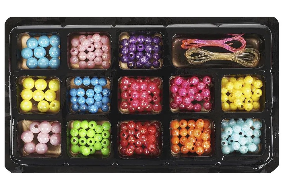 Вашу принцессу непременно увлечет этот красочный набор для создания стильных украшений. В наборе уже есть все необходимое, включая инструкцию, чтобы создавать самые красивые браслеты, бусы и кольца, которые подойдут к любому наряду. Бусины сделаны из безопасного пластика.