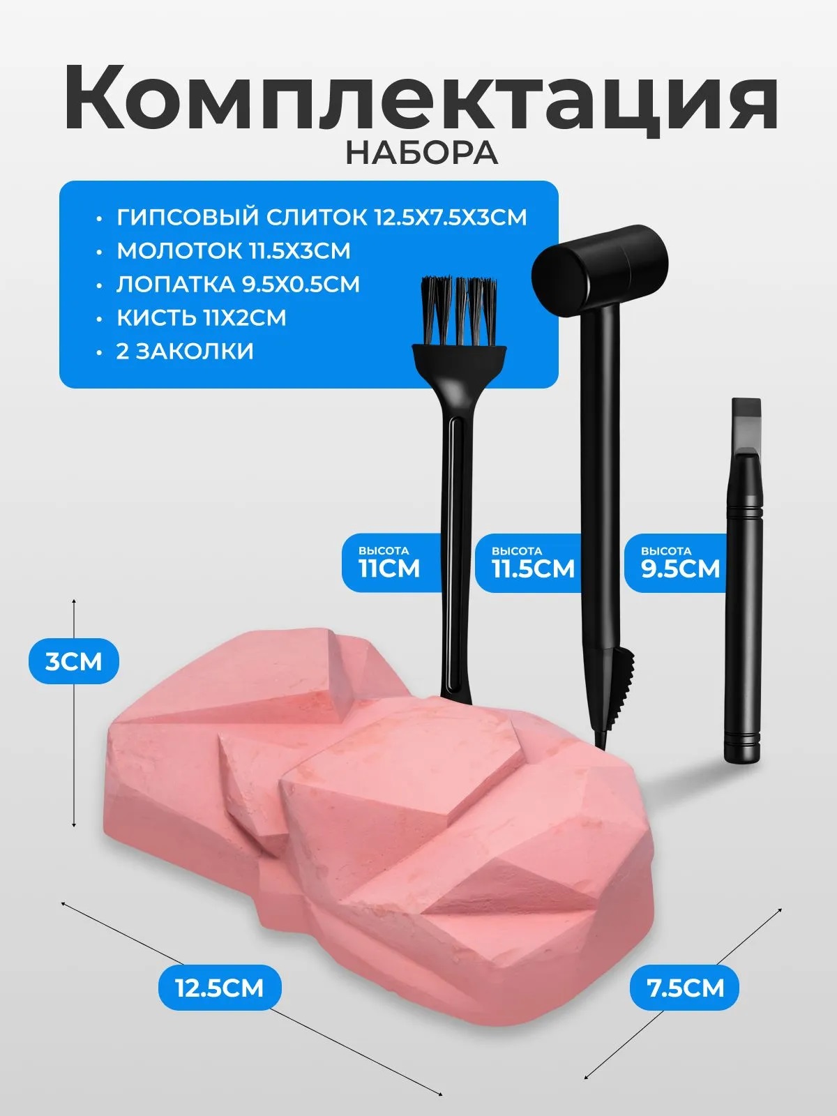 - гипсовый слиток (12.5х7.5х3 см.)