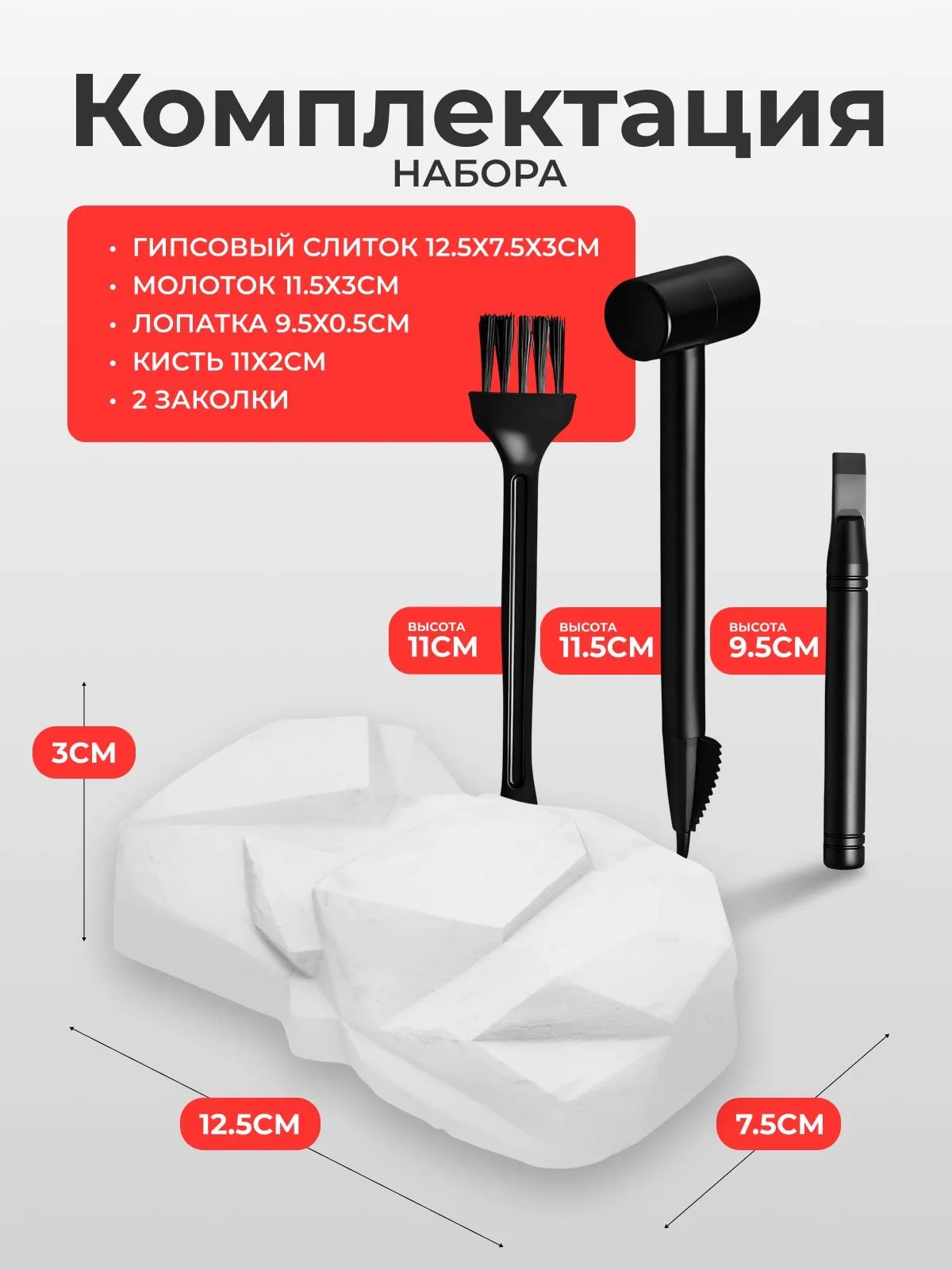 - гипсовый слиток (12.5х7.5х3 см.)