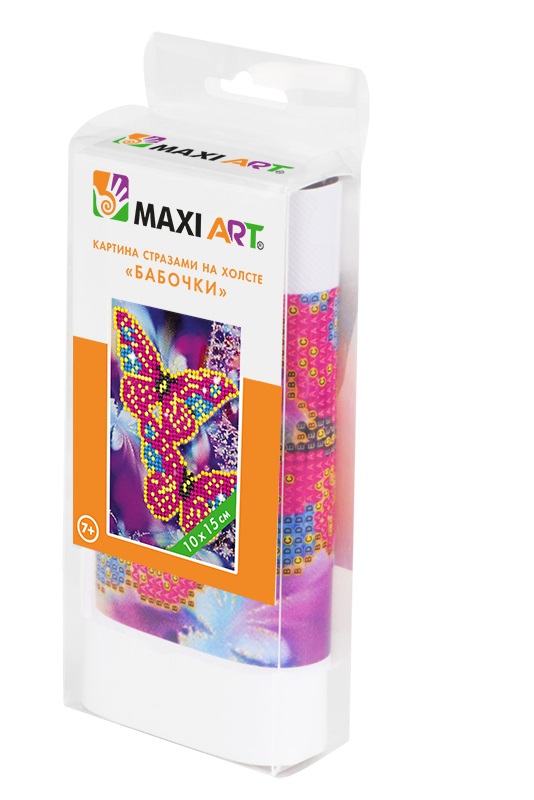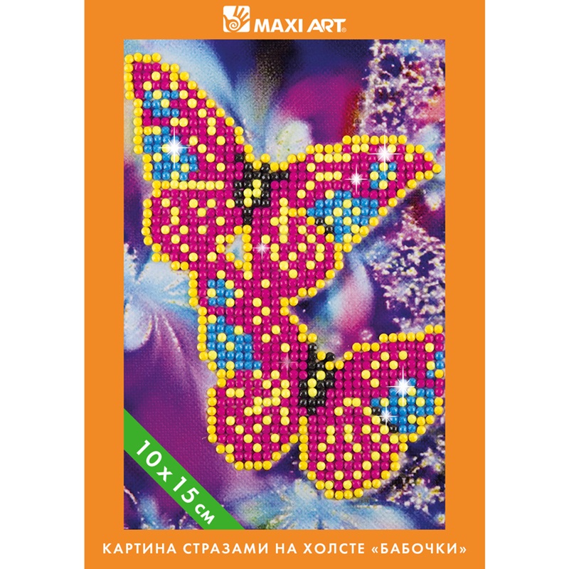 Картина Стразами на Холсте Maxi Art, Бабочки, 10х15см, в Коробке