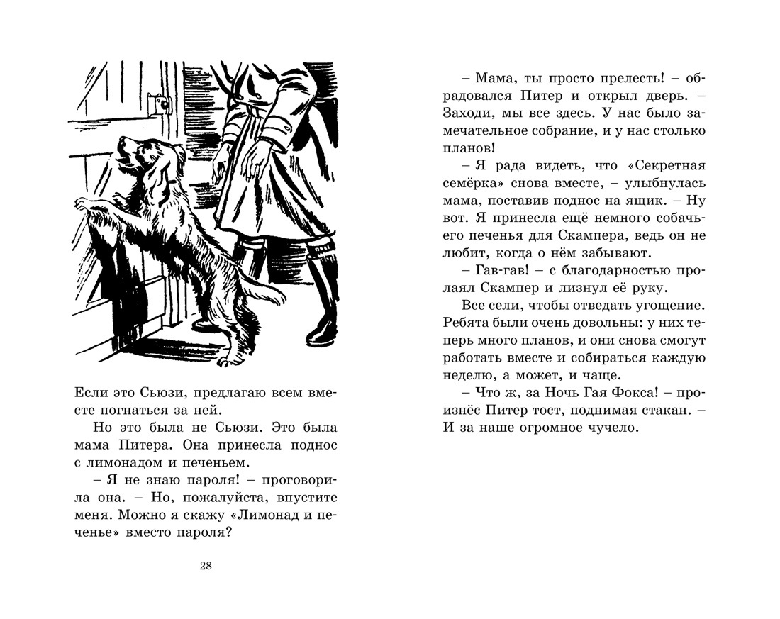 «Секретная семёрка», как всегда, готова начать новое расследование, но в последнее время ребятам что-то не везёт – в окрестностях не происходит ничего необычного. А тут, как назло, Сьюзи, настырная сестрица Джека, пытается вынюхать, чем занята «Секретная семёрка». И когда у команды Питера пропадают деньги, собранные на петарды, Сьюзи сразу попадает под подозрение…