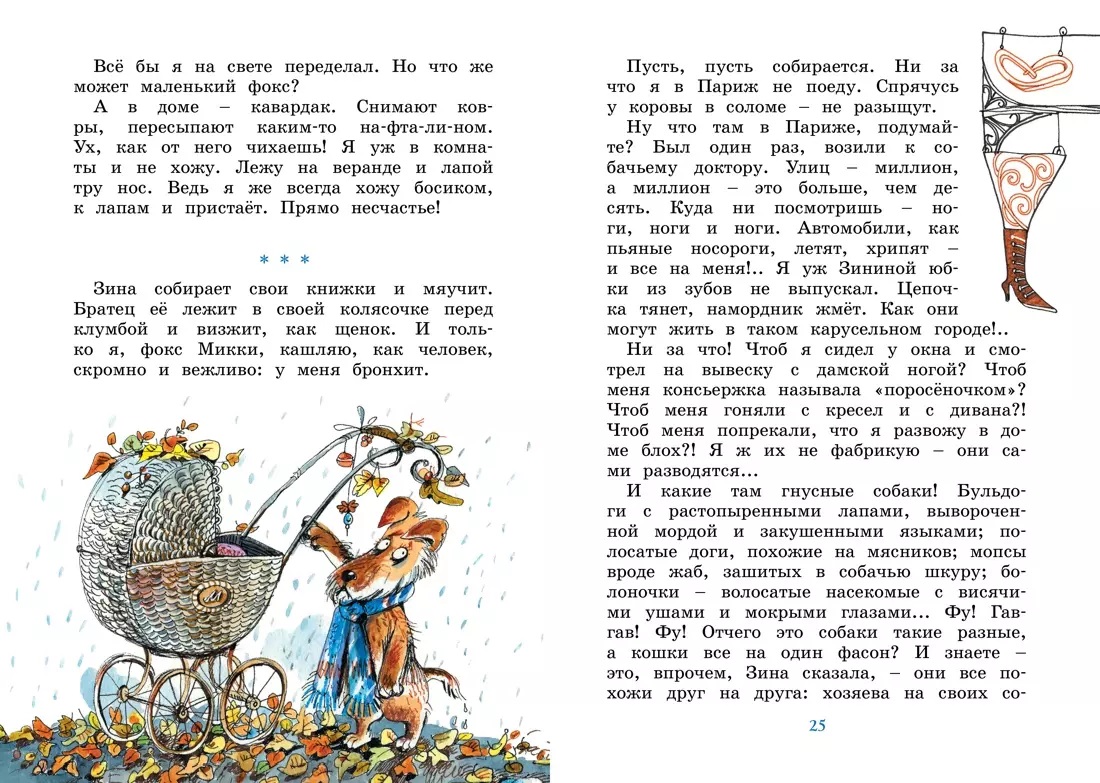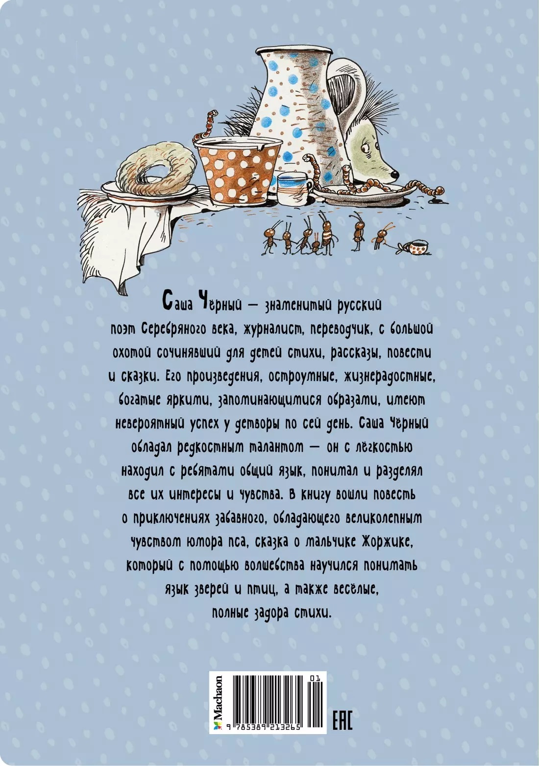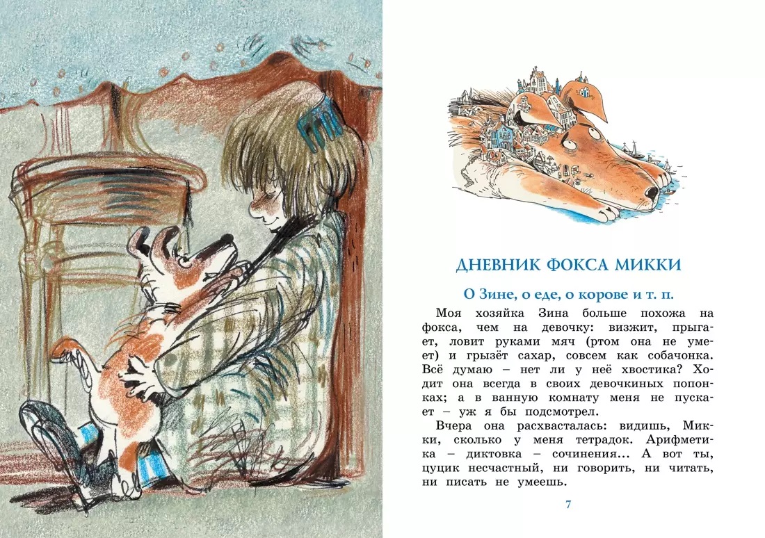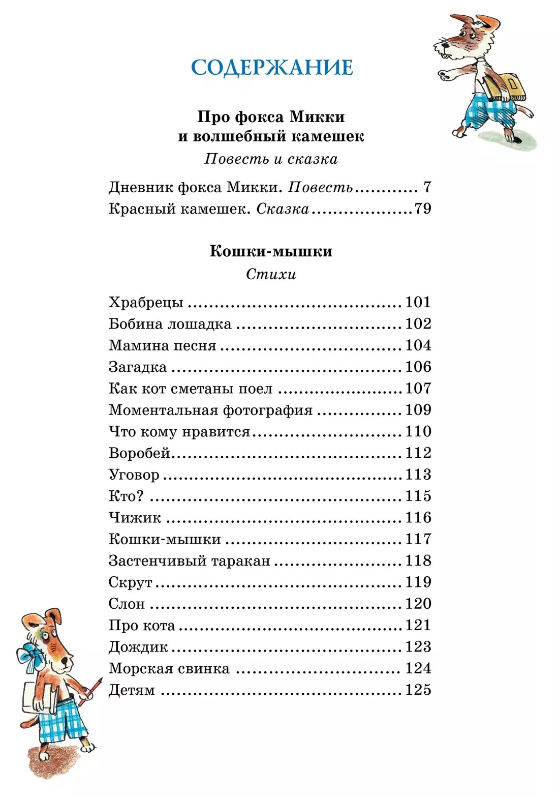 Саша Чёрный – знаменитый русский поэт Серебряного века, получивший мировую славу в том числе и как автор произведений для детей. Для них он писал сказки, рассказы, повести, стихи. Пожалуй, одна из самых известных его повестей – «Дневник фокса Микки», в которой речь идёт от лица забавного пса Микки, обладающего великолепным чувством юмора. В ироничной манере он рассказывает о своей полной событий собачьей жизни, о маленькой хозяйке Зине, обо всём, что его окружает. Дети обязательно полюбят этого необыкновенного рассказчика. Кроме того, в книгу вошли сказка «Красный камешек» и весёлые стихи.