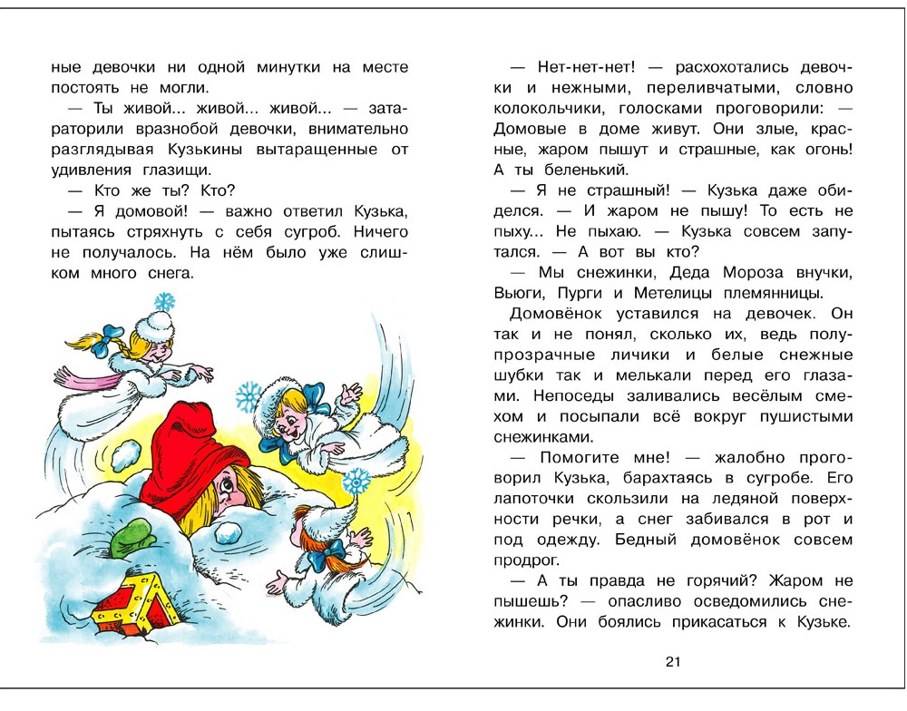 Сказочная повесть Галины Александровой о приключениях маленького домовёнка из серии “Библиотека школьника”. Однажды домовёнок Кузька отправился погостить в свою родную деревеньку. Да по пути с ним приключения разные случились. Но не растерялся Кузька – и сам выпутался из всех передряг, и домовят выручил!.