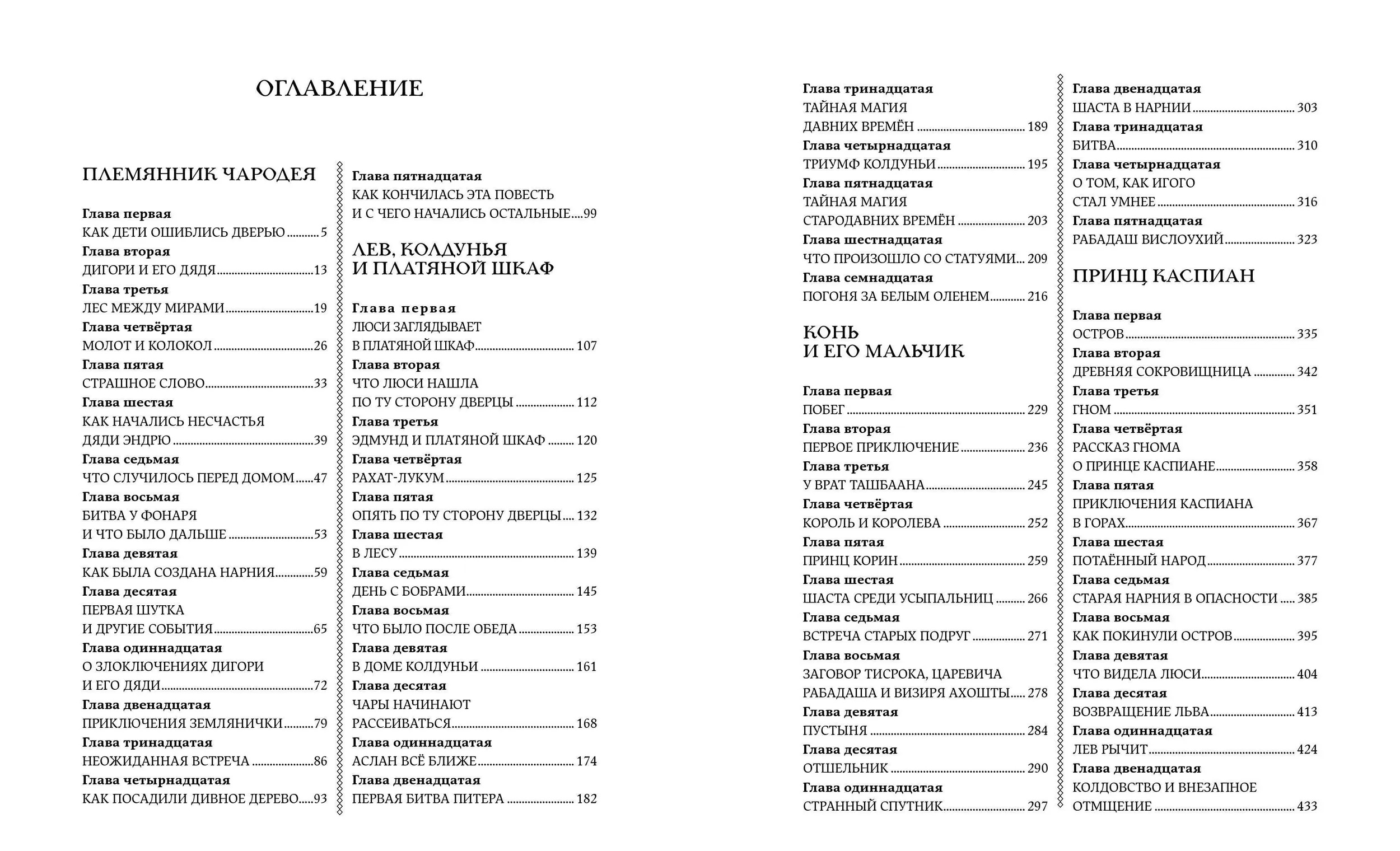 В этой книге собраны все семь повестей цикла, рассказывающих о возникновении чудесной страны, о ее создателе — могучем льве Аслане и о приключениях в Нарнии ребят из обыкновенной семьи: «Племянник чародея», "Лев, колдунья и платяной шкаф», «Конь и его мальчик», «Принц Каспиан», «"Покоритель зари", или Плавание на край света" и другие. «Хроники Нарнии» с удовольствием читают люди всех возрастов, но первое знакомство с волшебным миром должно состояться в детстве, когда особенно сильны свежесть восприятия и вера в чудеса.