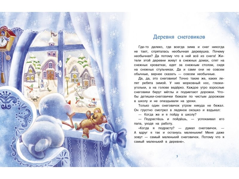 Далеко-далеко на севере, там где всегда зима и снег, есть необычная деревушка, в которой живут… снеговики! Они живут в снежных домах, детишки ходят в снежную школу, а взрослые - на работу к Дедушке Морозу и на фабрику снежинок. И живет в этой деревеньке самый маленький снеговичок! Он очень мечтает сделать для всех жителей деревеньки чудесный сюрприз к Новому году. Интересно, получится ли у него всех удивить?..Эту смешную и трогательную волшебную сказку написала автор Татьяна Коваль, а иллюстрации к ней сделала художница Светлана Чекурова. Читайте о приключениях самого маленького снеговичка, и пусть с вами под новый год тоже случится маленькое чудо!Для детей дошкольного возраста.