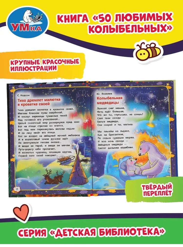 Книга «50 любимых колыбельных» из серии «Детская библиотека» ТМ «УМка» непременно понравится малышу: