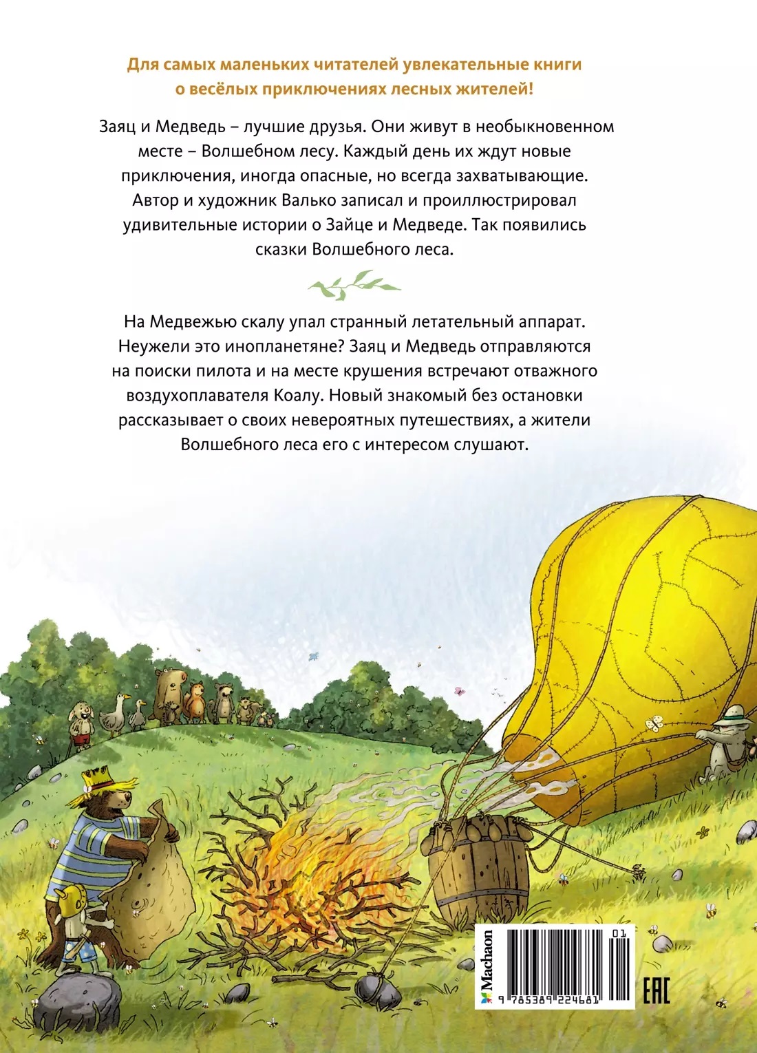 На Медвежью скалу упал странный летательный аппарат. Неужели это инопланетяне? Заяц и Медведь отправляются на поиски пилота и на месте крушения встречают отважного воздухоплавателя Коалу. Новый знакомый без остановки рассказывает о своих невероятных путешествиях, а жители Волшебного леса его с интересом слушают.