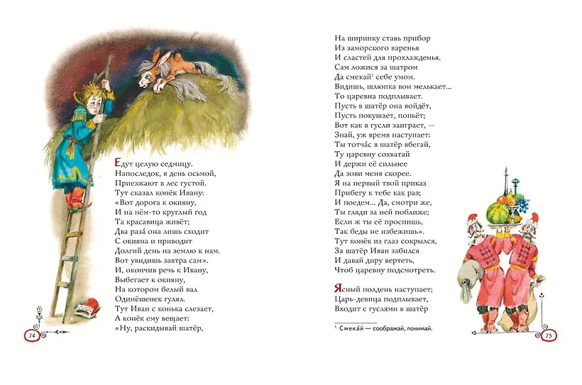 Весёлая, звонкая и увлекательная стихотворная сказка Петра Павловича Ершова о необыкновенных приключениях Иванушки и его верного друга, чудесного конька-горбунка, с иллюстрациями народного художника России Анатолия Михайловича Елисеева станет настоящим украшением любой книжной коллекции.