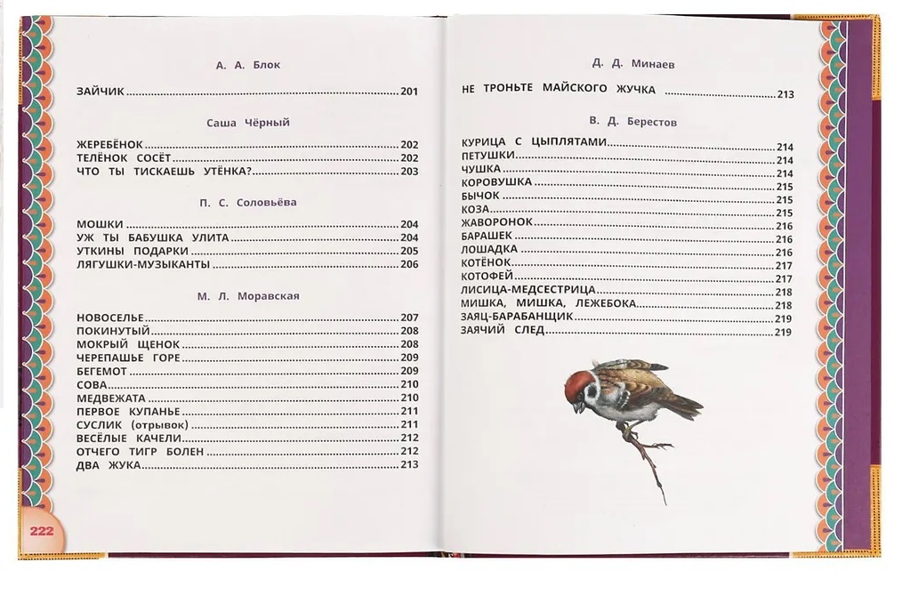- стихи разных авторов: В. А. Жуковский, Л. Н. Модзалевский, И. И. Косяков, К. Д. Бальмонт, К. Н. Льдов (Розенблюм), А. А. Блок, Саша Чёрный, П. С. Соловьёв, М. Л. Моравская, Д. Д. Минаев, В. Д. Берестов
