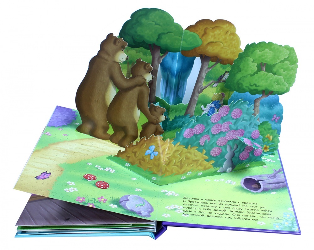 В этой книжке, как в театре, оживет чудесная сказка о Златовласке и трех медведях. 6 объемных картин-панорам помогут малышу представить все, что пережила маленькая девочка Златовласка, которая заблудилась в лесу и попала в дом к трем медведям. Книга для детей до трех лет