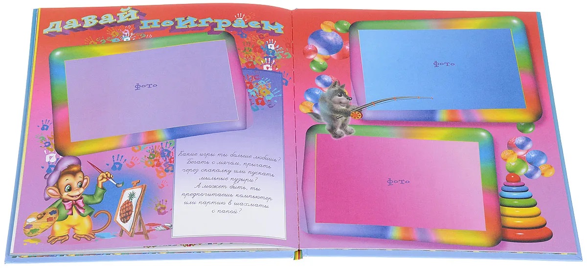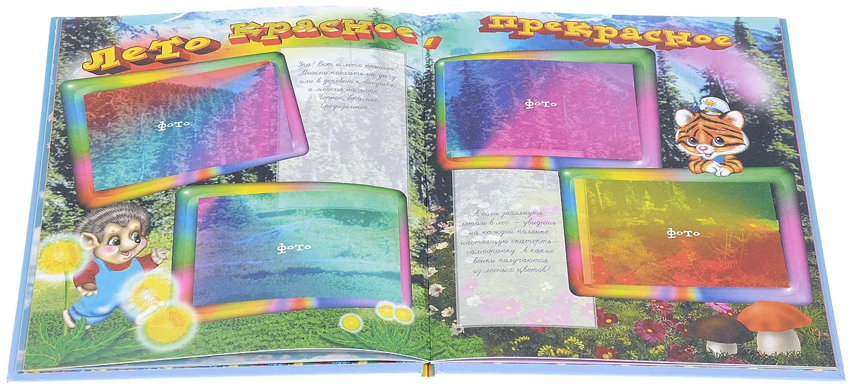 Для многих детей детский сад становится первым серьезным шагом к большой жизни. Фотографии воспитателей и первых друзей, веселых игр и праздников - все это можно наклеить в этот красочный альбом. Каждый разворот - это отдельная тема: "Мои первые друзья", "Поет зима, аукает!", "Летнее путешествие" и т.д., которая сопровождается короткими пояснениями для ребенка.