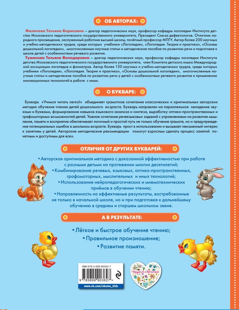 Букварь "Учимся читать легко!" объединяет грамотное сочетание классической и оригинальной авторской методик обучения чтению дошкольников с особенностями речевого развития. Букварь поможет параллельно овладеть звуками и буквами и сформировать навыки письма. Сочетание заданий с упражнениями на развитие мышления, памяти и восприятия помогут не только обучить грамоте, но и предупредить потенциальные ошибки в школьном возрасте. Букварем просто пользоваться, он вызывает неизменный интерес к занятиям у детей. Авторские методические рекомендации помогут взрослым сделать занятия понятными и доступными.