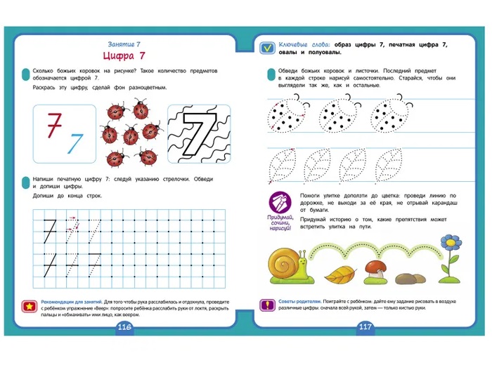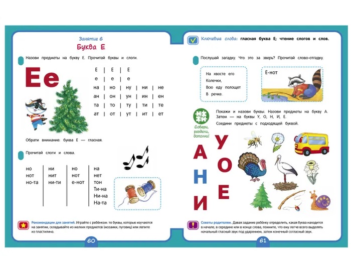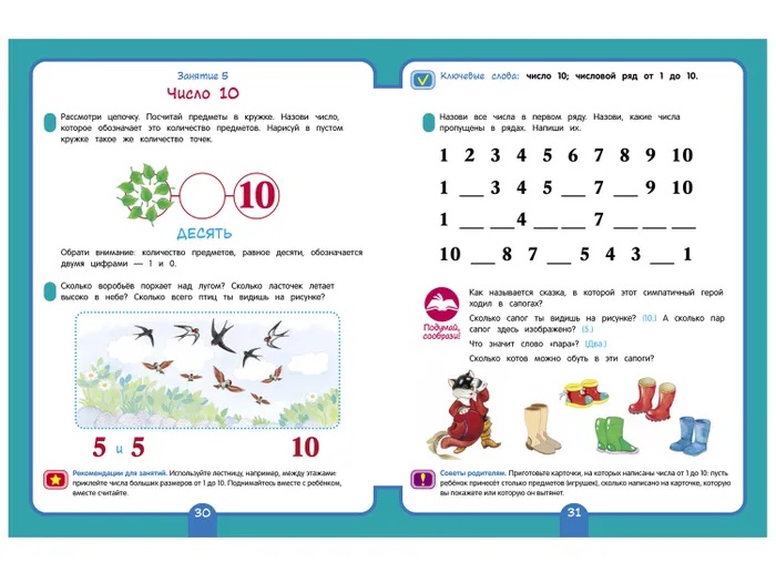 Для каждого занятия мы добавили советы для родителей, ведь вовлечённость старших очень важна для усвоения ребёнком нового материала. В течение каждого месяца вы сможете заниматься с ребёнком развитием речи, математикой, а также обучать его грамоте и письму.