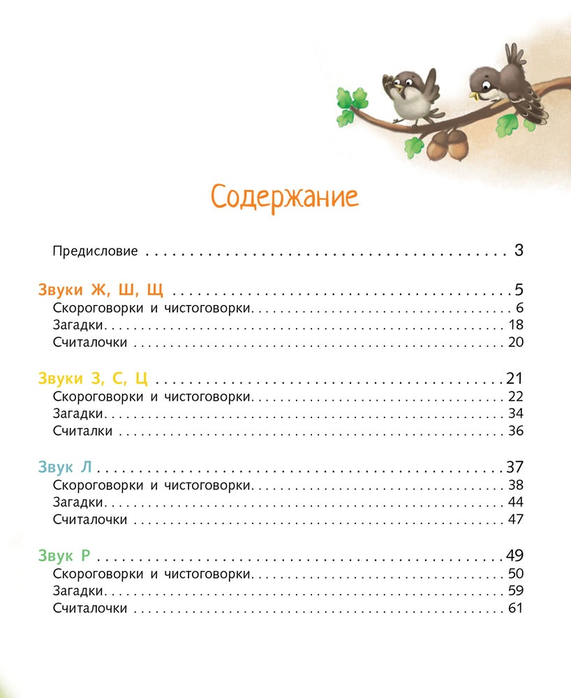 Если ваш малыш научился говорить, но пока не слишком чётко это делает, не расстраивайтесь и не паникуйте. Произношение согласных звуков С, З,Ц, Ш, Ж, Щ, Р, Л довольно часто вызывает у детей затруднения. Однако многократное повторение того или иного звука, а также исправление неправильного произношения этого звука на занятиях и в обычной речи ребёнка обязательно приведут к успеху. Эта книга станет вам незаменимым помощником, так как в ней вы найдёте большое количество скороговорок, чистоговорок, загадок и считалочек для автоматизации правильного произношения наиболее трудных звуков.