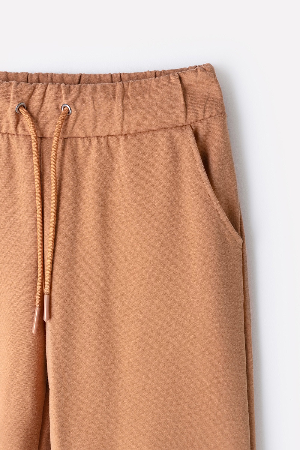 Брюки из футера с начесом, произведенного из натурального хлопка. Пояс регулируется по ширине с помощью шнурка. По низу изделие собрано на резинку, имеет два кармана по бокам. Брюки сохраняют цвет и форму после многократных стирок.