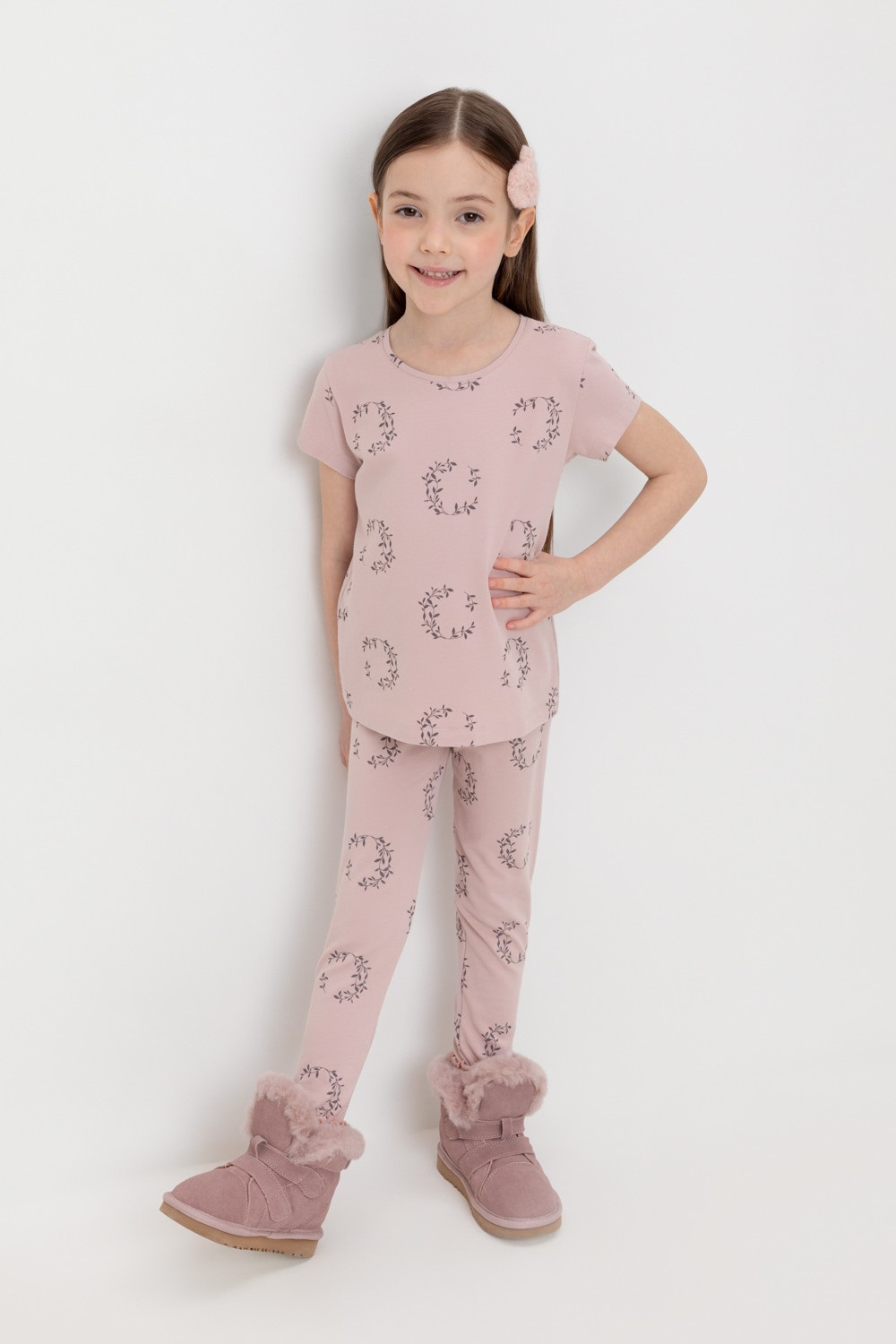 Лосины для девочки из эластичного трикотажного полотна. Оригинальная набивка выполнена из стойких текстильных гипоаллергенных красителей.