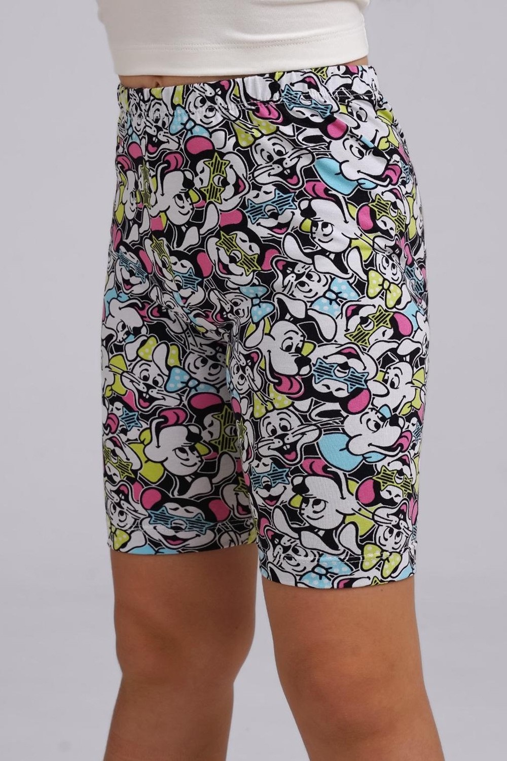 Невероятно яркие принтованные велосипедки подойдут для прогулок или детского сада. Выполнены из эластичного хлопкового трикотажа. Смело сочетайте модель с футболкой или свитшотом