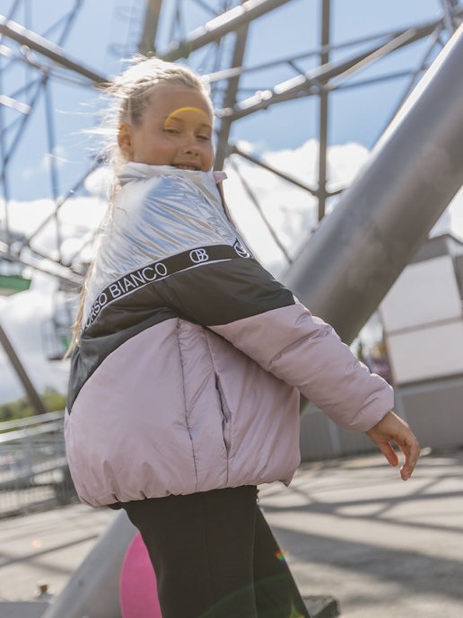 Утепленная объемная куртка в стиле colorblock. Декорирование модели построено на контрасте фактур внешней ткани. Модель со спущенным плечом, что соответствует современным тенденциям моды. Высокий воротник-стойка, внутренняя ветрозащитная планка, утягивающая внутренняя резинка по низу изделия надежно защитят от проникновения ветра. Два кармана в боковых швах. Подкладка выполнена из полиэстера. Утеплитель - Termofinn 100гр.Рекомендованный температурный режим от +5С до +15С (необходимо учитывать индивидуальные особенности ребенка, нижние слои одежды и климатические условия).