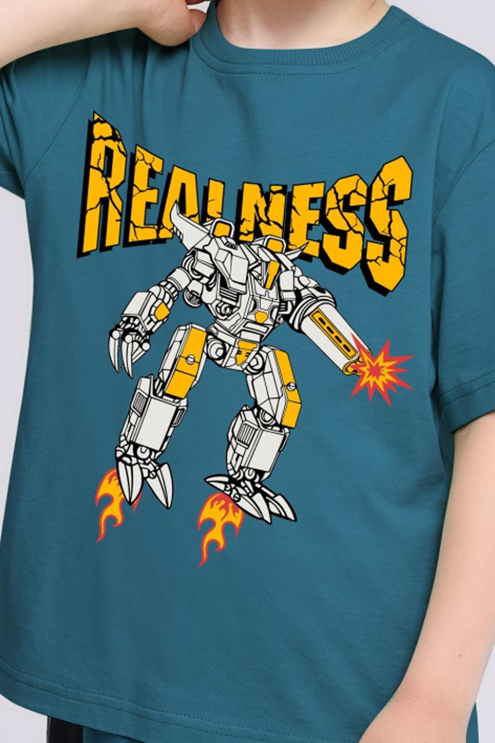 Футболка среднего объема из хлопкового трикотажа. Спереди украшена крупным принтом с объемным эффектом. Детали кроя: круглый вырез горловины, короткий рукав.
