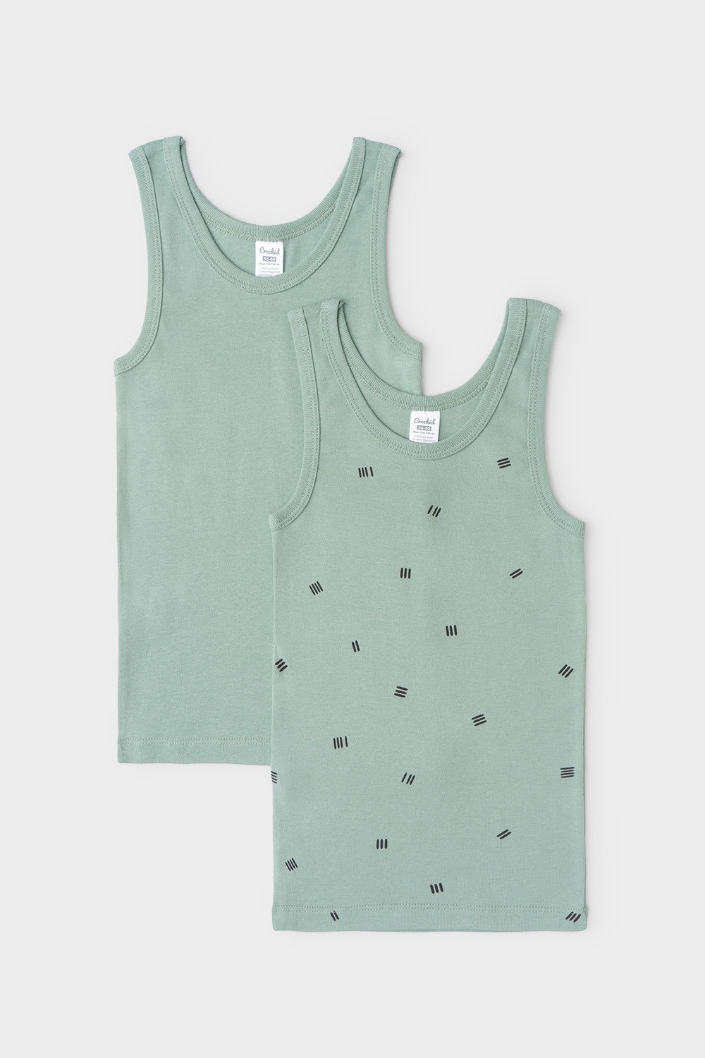 Трикотажные майки в комплекте 2 шт на лямках из натурального хлопка. Оригинальная набивка выполнена из стойких, гипоаллергенных текстильных красителей. Изделие сохраняет цвет и форму после многократных стирок. Все трикотажные полотна производятся в соответсвии с нормами Швейцарского сертификата ЭкоТекс.