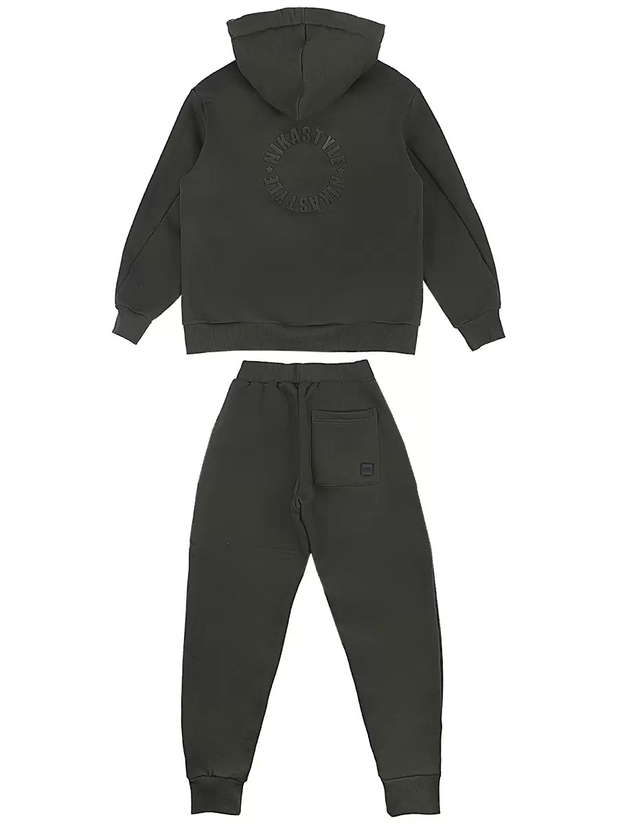 Костюм СКАЛА из плотного хлопкового трикотажа с мягким стриженным начесом внутри. Состоит из двух предметов — толстовки и брюк. Толстовка свободного силуэта, на молнии, с карманами в боковых швах. Модель с объемным капюшоном. Манжеты и пояс из трикотажного полотна «кашкорсе». Декорирован фирменным принтом NIKASTYLE. Брюки свободного силуэта, зауженные к низу, с боковым и задним карманом с трикотажными манжетами. Пояс с резинкой и со шнуром, для дополнительной регулировки объема по талии. Комплект можно носить в качестве самостоятельной одежды при t от +10С до +20С, а также в качестве второго слоя под верхнюю одежду. Прекрасный вариант для прогулок и активного отдыха, в поездках просто незаменим. Комплект станет любимой вещью в гардеробе вашего ребенка. Рекомендуется предварительная стирка для удаления лишнего ворса с изделия.