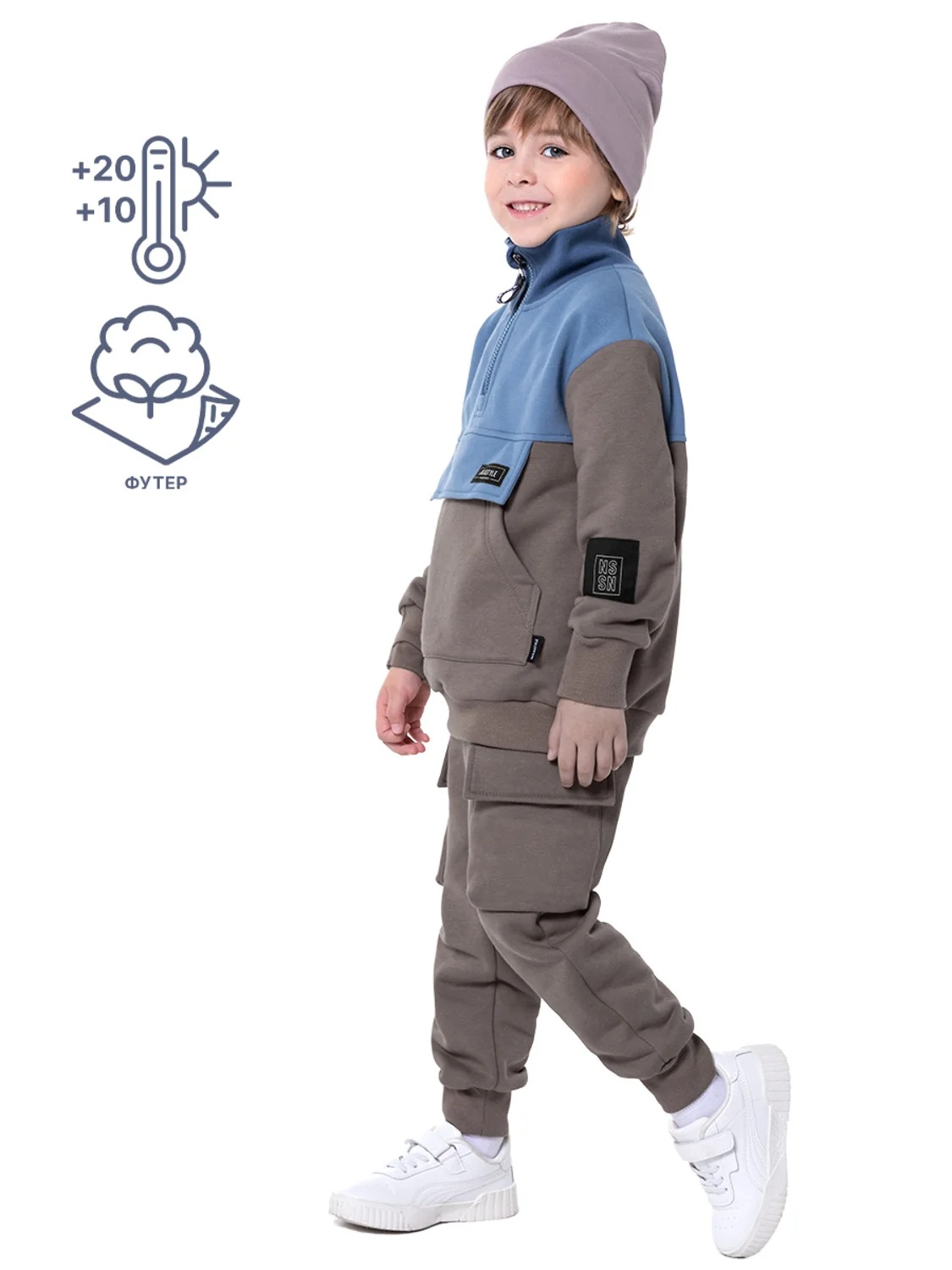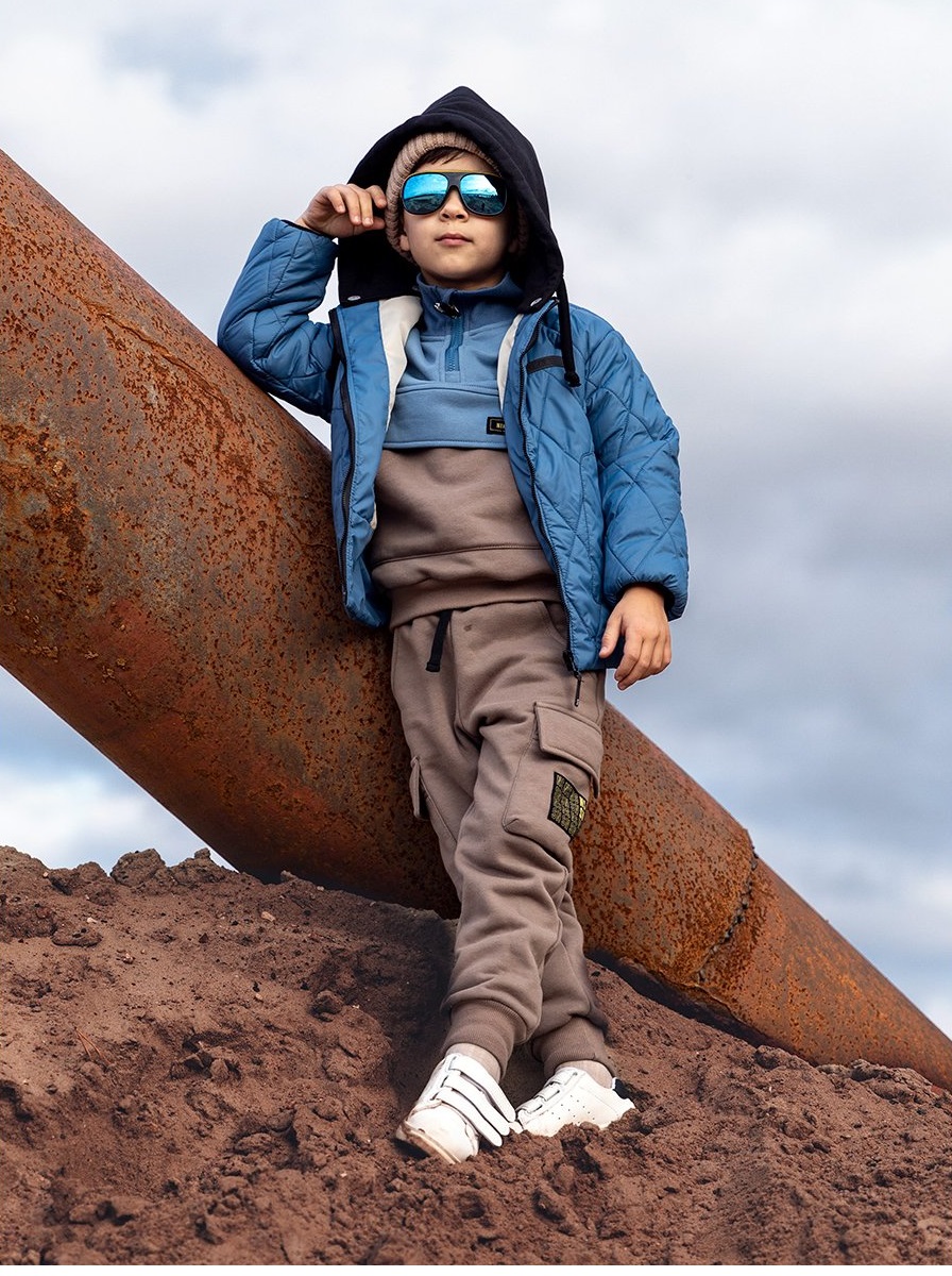 Костюм ПРОСПЕКТ из плотного хлопкового трикотажа с мягким велюровым начесом внутри. Состоит из двух предметов — анорак и брюк. Анорак свободного силуэта, с воротником-стойкой на молнии, с карманом «кенгуру». Манжеты и пояс из трикотажного полотна «кашкорсе». Брюки свободного силуэта, зауженные к низу, с боковыми и накладными карманами, с трикотажными манжетами. Пояс с резинкой и со шнуром, для дополнительной регулировки объема по талии. Комплект можно носить в качестве самостоятельной одежды при t от +10С до +20С, а также в качестве второго слоя под верхнюю одежду. Прекрасный вариант для прогулок и активного отдыха, в поездках просто незаменим. Комплект станет любимой вещью в гардеробе вашего ребенка. Рекомендуется предварительная стирка для удаления лишнего ворса с изделия.