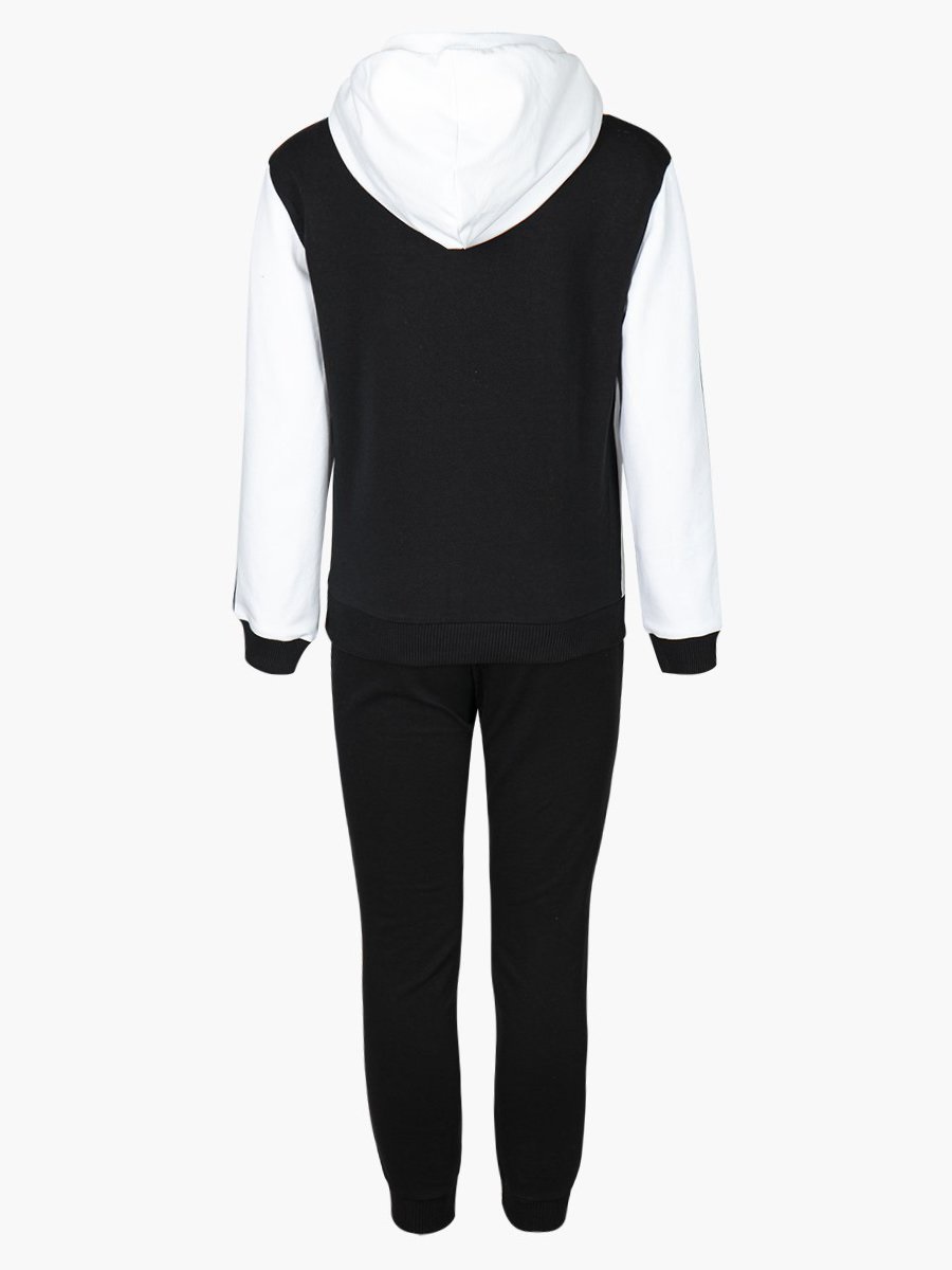 Комплект для мальчика. Тостовка с капюшоном свободного силуэта. На полочке принт. Плечо спущенное, рукав длинный с манжетом по низу, по центру рукава лампас. По низу пояс. Брюки с лампасами прямого силуэта, с карманами в боковых швах. Брюки на поясе с эластичной тесьмой и шнурком внутри. По низу брюк манжеты.
