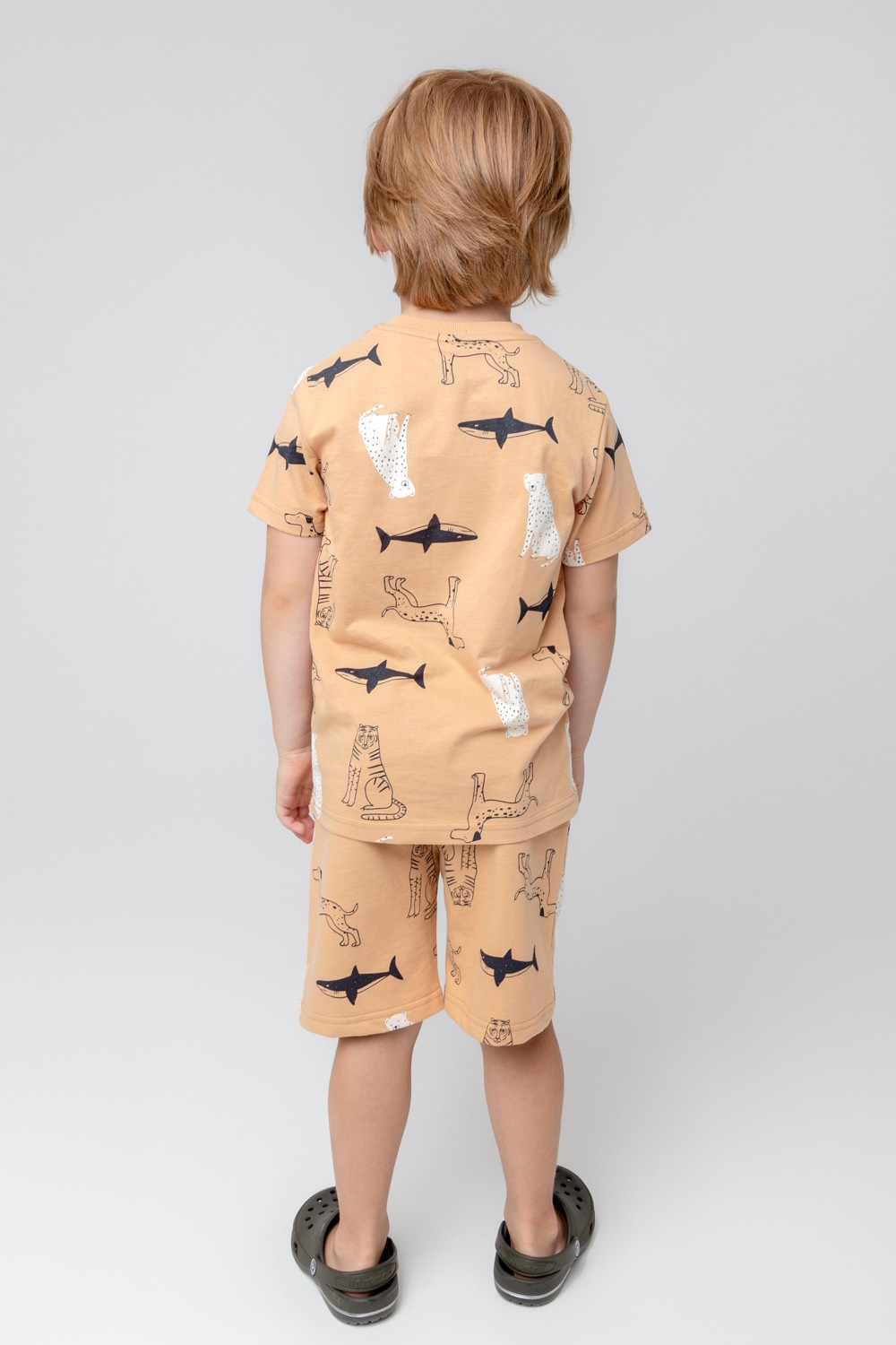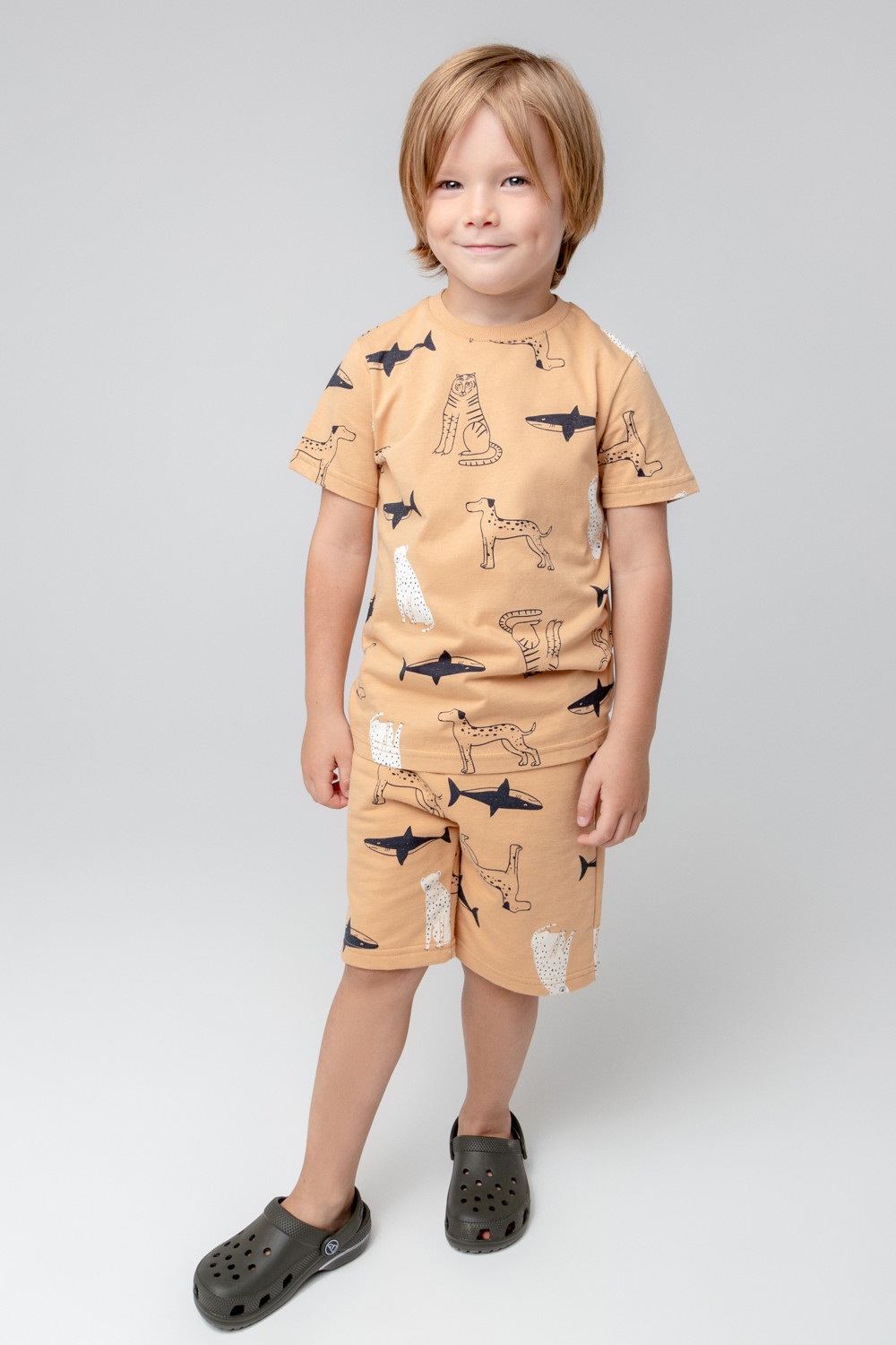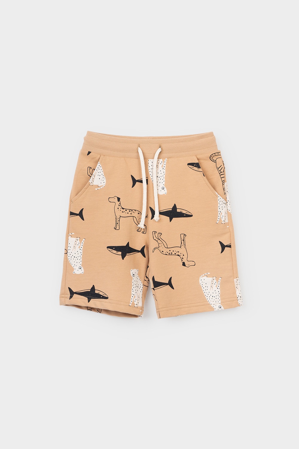 Трикотажные шорты для мальчика из петельчатого футера. Эластичный пояс на резинке регулируется по ширине с помощью шнурка, по бокам два удобных кармана.