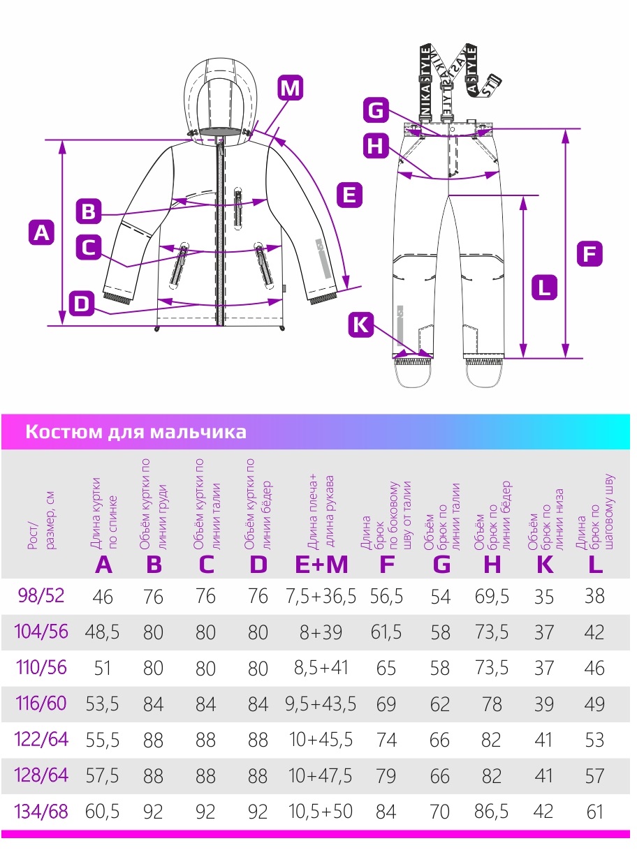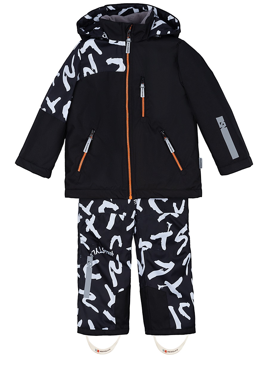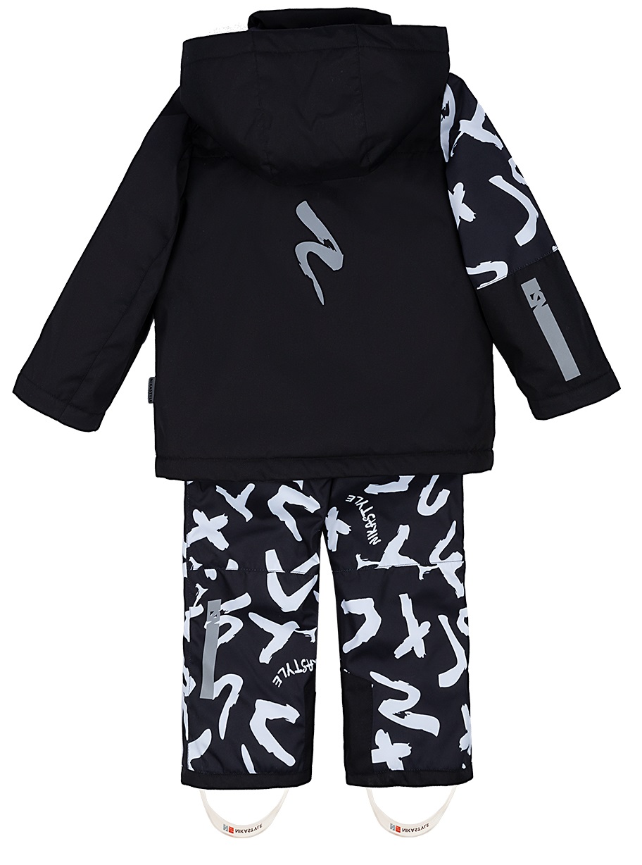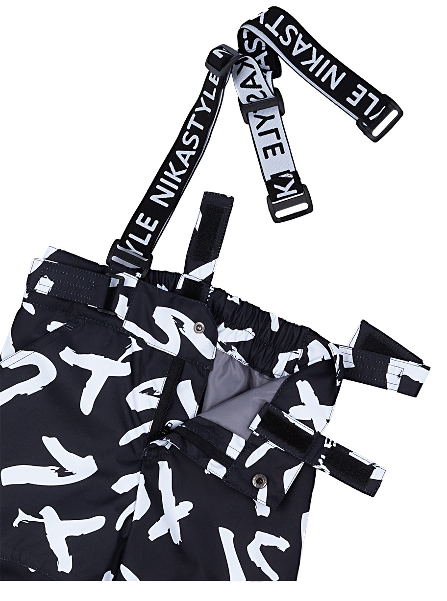Комплект SYMBOL из мембранной ткани,сочетания однотонной и принтованной. Мембрана отталкивает воду и грязь, защищает от ветра и позволяет коже дышать. Мембрана в сочетании с утеплителем нового поколения fiberlite сохраняет тепло во время прогулок. КУРТКА с центральной застежкой на тесьму-молнию . Внутренняя планка защитит от холодного ветра и непогоды. Капюшон втачной ,с кулисой для регулировки объема. Куртка с тремя карманами на молнии. Рукава с внутренним трикотажным манжетом защищают от проникновения холодного ветра. По низу куртки утяжка для регулировки объема изделия. Подкладка по спинке и полочке из флиса. БРЮКИ из принтованной ткани на регулируемых, съемных бретелях, с дополнительной регулировкой объема по талии, с двумя карманами. Брючины оснащены муфтами и силиконовыми штрипками. Средний шов, шаговый и швы в области колен проклеены. Комплект оснащен светоотражающими элементами для безопасности ребенка в темное время суток. Комфортная температура эксплуатации от -5 до +10 С. Данные носят субъективный характер и зависят от индивидуальных особенностей ребенка. Рекомендуем дополнить образ фирменными аксессуарами - шапкой/балаклавой /комплектом , варежками/перчатками NIKASTYLE, которые отлично сочетаются с изделиями коллекции.