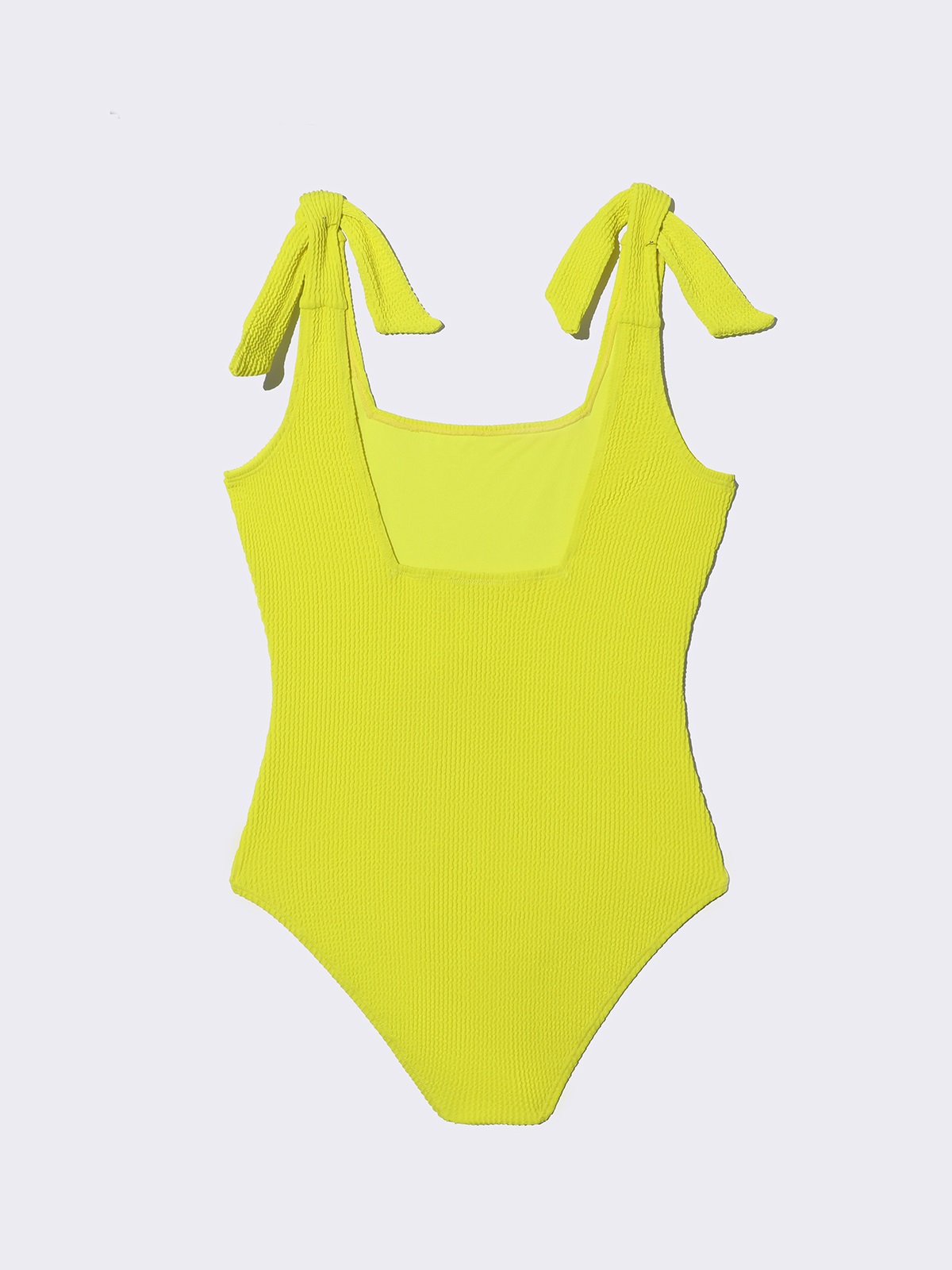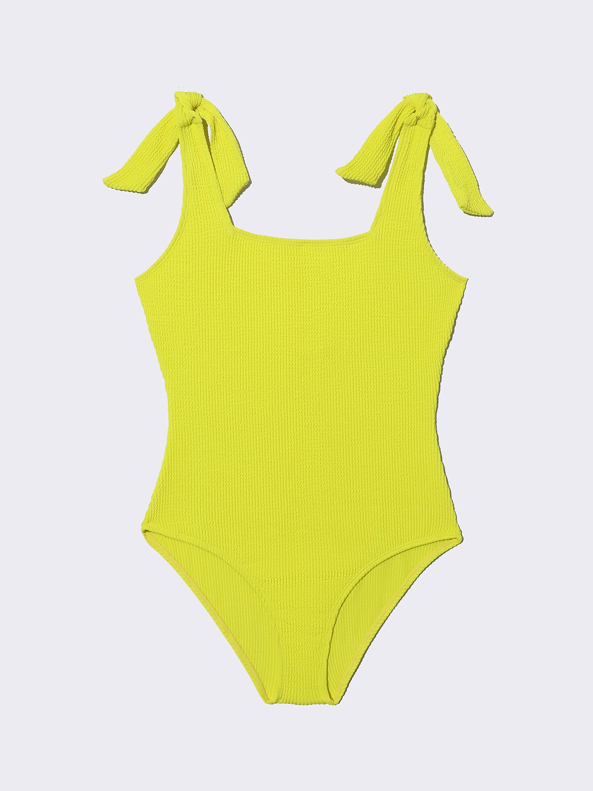 Купальник слитный для девочки из эластичной жатой ткани. Лямки на завязках, что позволяет регулировать высоту посадки. Передняя часть продублирована мягкой трикотажной тканью.