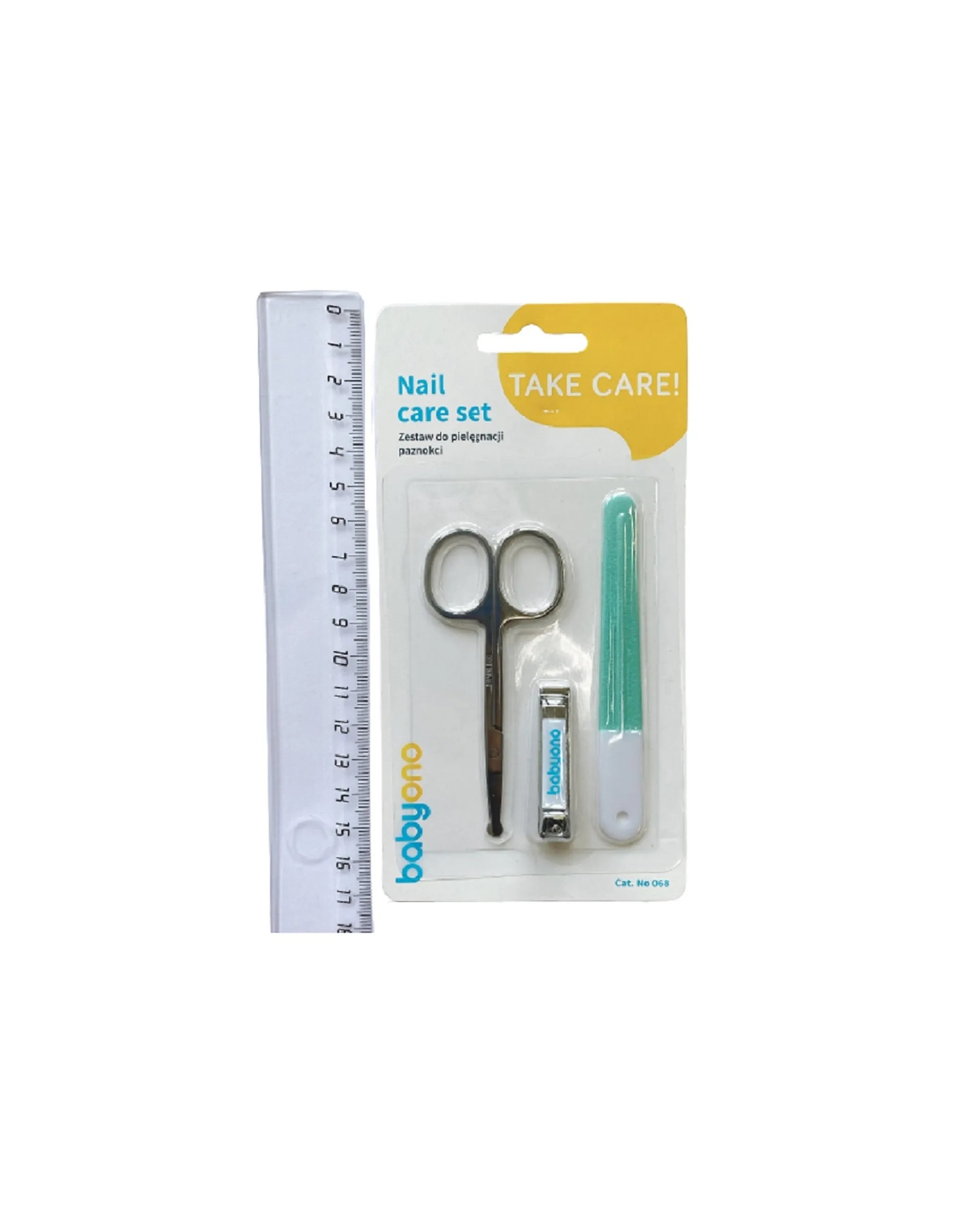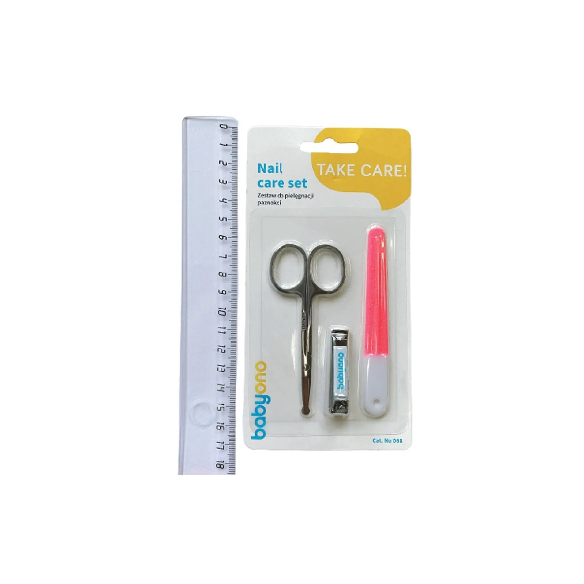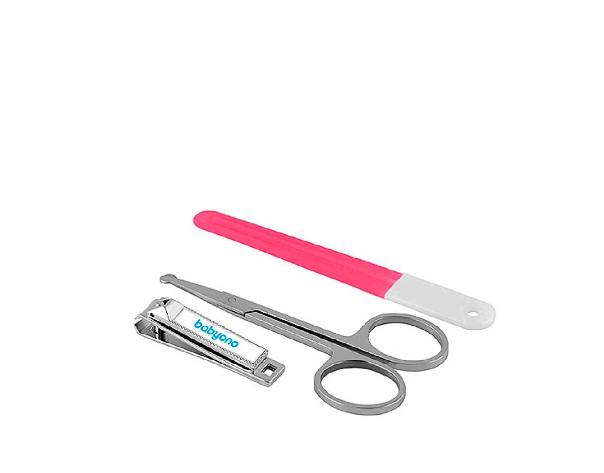 Набор маникюрных принадлежностей от BabyOno. Ножницы с щипчиками BabyOno помогут аккуратно срезать маленькие ноготки, а при необходимости подравнять их пилочкой. Особенности: тонкие металлические лезвия ножниц идеально срезают детские ноготки; закругленные ножницы запроектированы специально для мягких и маленьких ногтей ребёнка; мелкозернистая пилочка поможет устранить неровности ногтя, защищая ребёнка от царапин; когда малыш подрастет, можно использовать щипчики; В комплекте: ножницы, пилочка для ногтей и щипчики. Вес: 32 гр; Размер набора: 9*1*18 см; Состав: пластик/металл; Возраст 0 мес+;