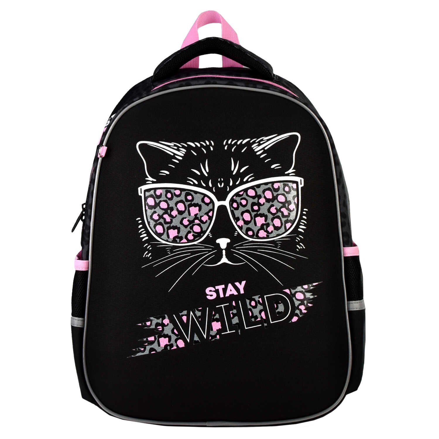 Ранец д/д каркасный "Стильная киса" чёрный