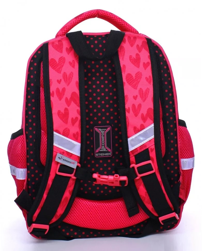 Также ранец имеет высокочёткий и яркий рисунок, который максимально устойчив к жаре и холоду; 3D нашивки; прочную ручку; качественные молнии фирмы "SBS" с гравировкой Steiner; устойчивые резиновые ножки с логотипом Steiner, а также фирменную подкладку. Каждый шов прошит дополнительными прострочками, которые в разы увеличивает прочность рюкзака. Водоотталкивающая и износостойкая ткань легко моется и чистится. По всему периметру рюкзака расположены светоотражающие элементы, позволяющие ребенку быть заметным в тёмное время суток.