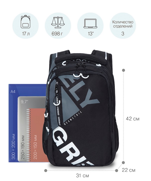 Собираете ребенка в школу и хотите разложить все «по полочкам». Но принадлежностей столько, что они либо не все помещаются, либо лежат как попало. Вместительный мужской рюкзак GRIZZLY поможет навести порядок в школьных вещах.