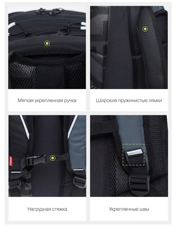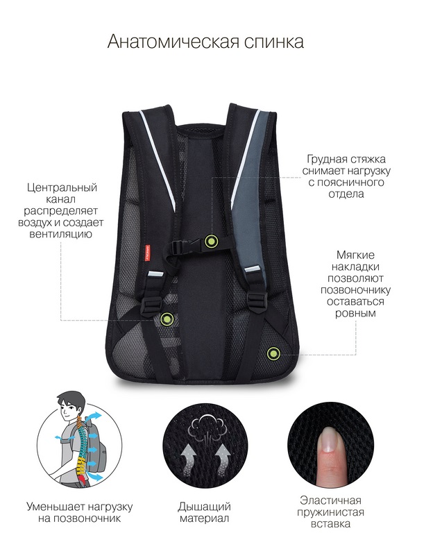 Чтобы при полной загрузке школьного рюкзака меньше уставала спина, мы сделали жесткую анатомическую спинку с накладками. Ребенок сохраняет правильную осанку.