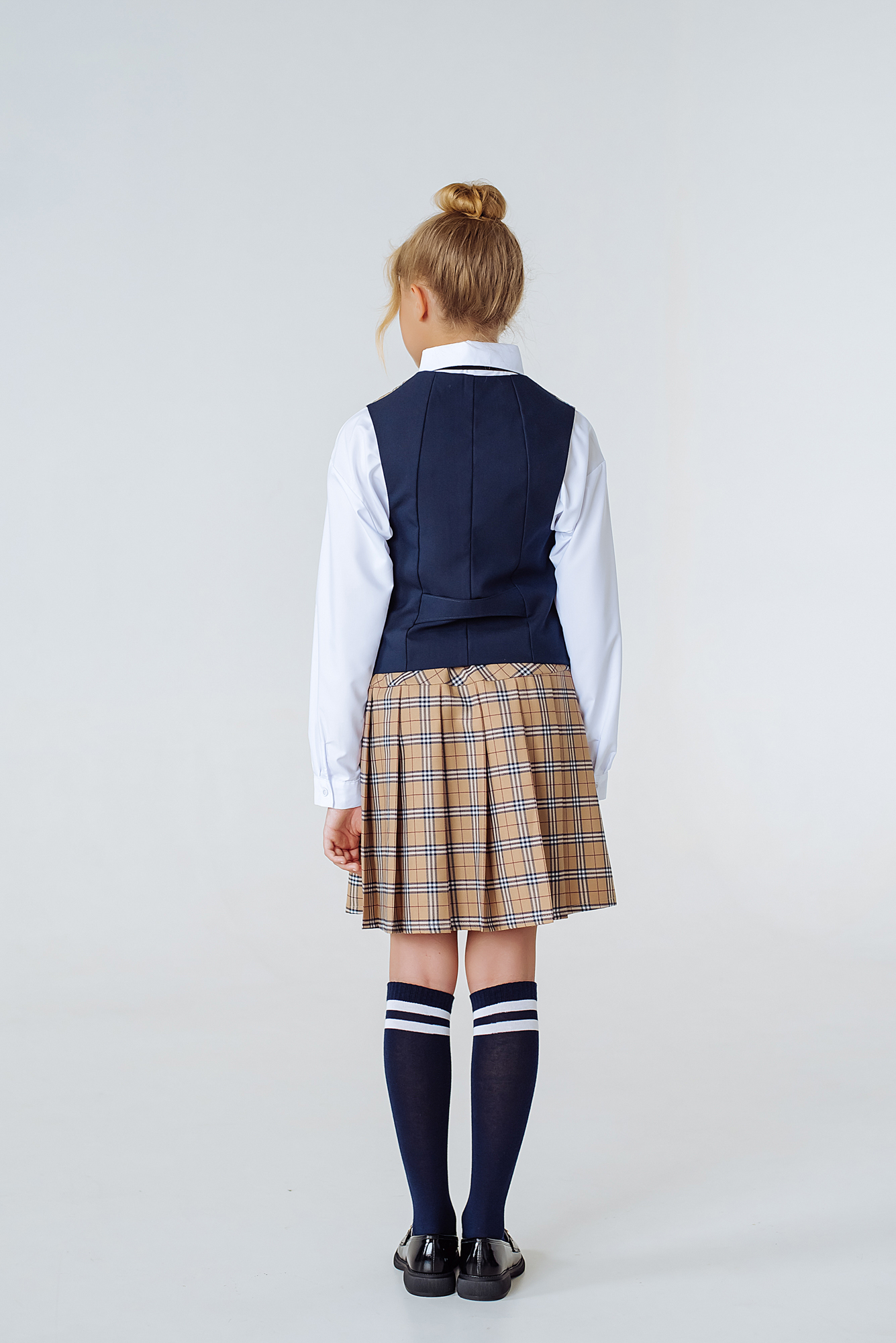 Юбка д/д третьего слоя Илиана син.-бежев.клетка лицей (р.36-38/152) -