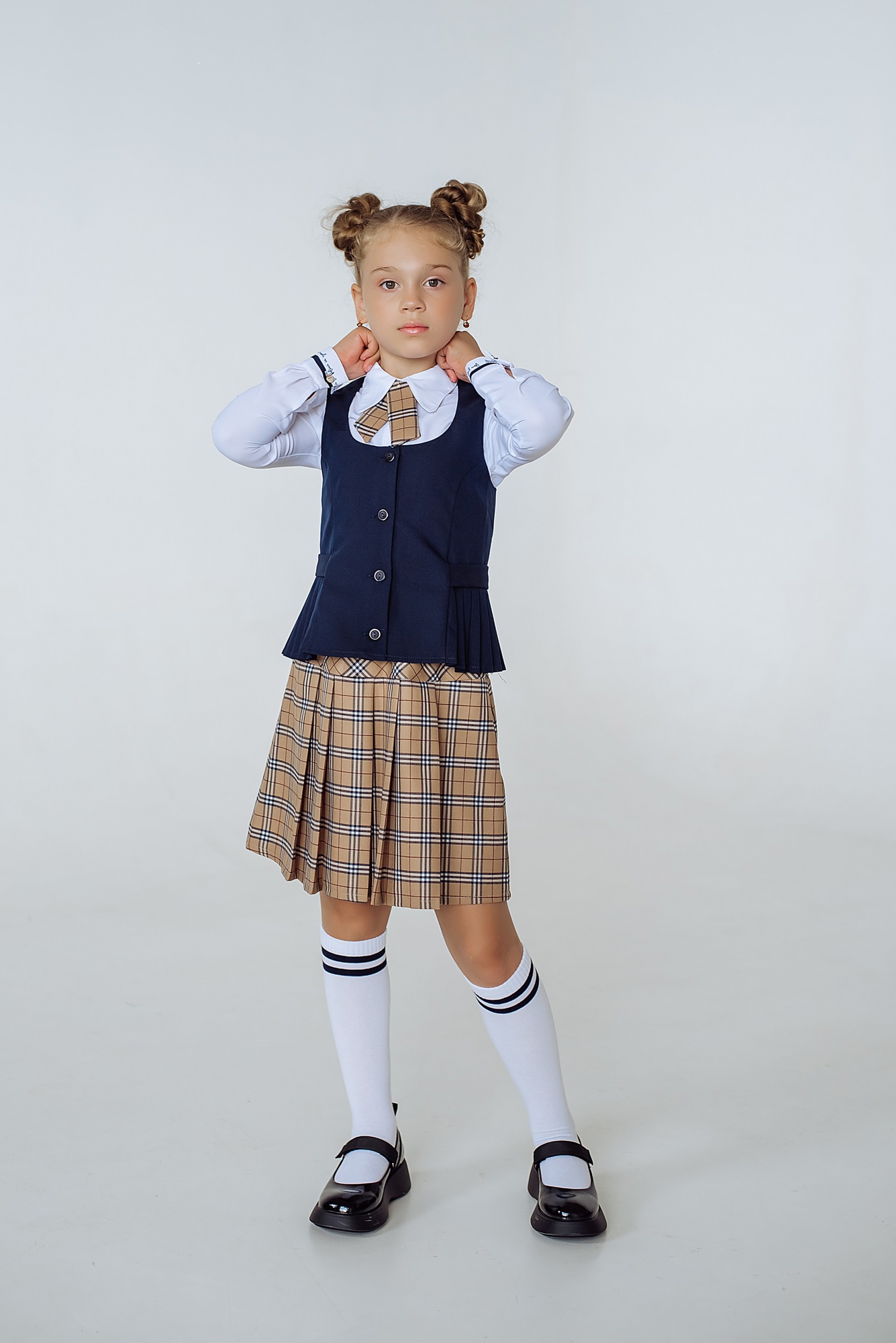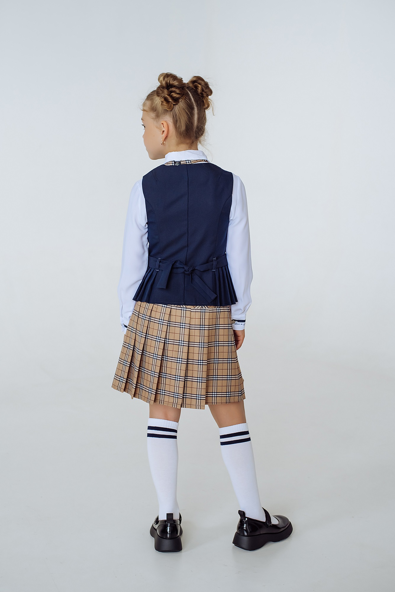 Юбка д/д третьего слоя Илиана ткань турин син.-бежев.клетка лицей (р.30-32/128) -