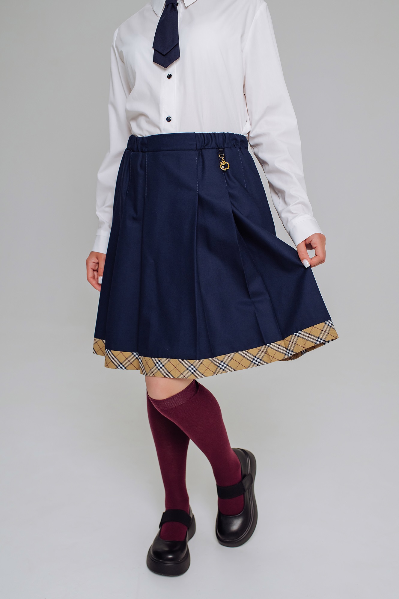 Юбка д/д третьего слоя Юника ткань турин син.-бежев.клетка лицей (р.42-44/152) -