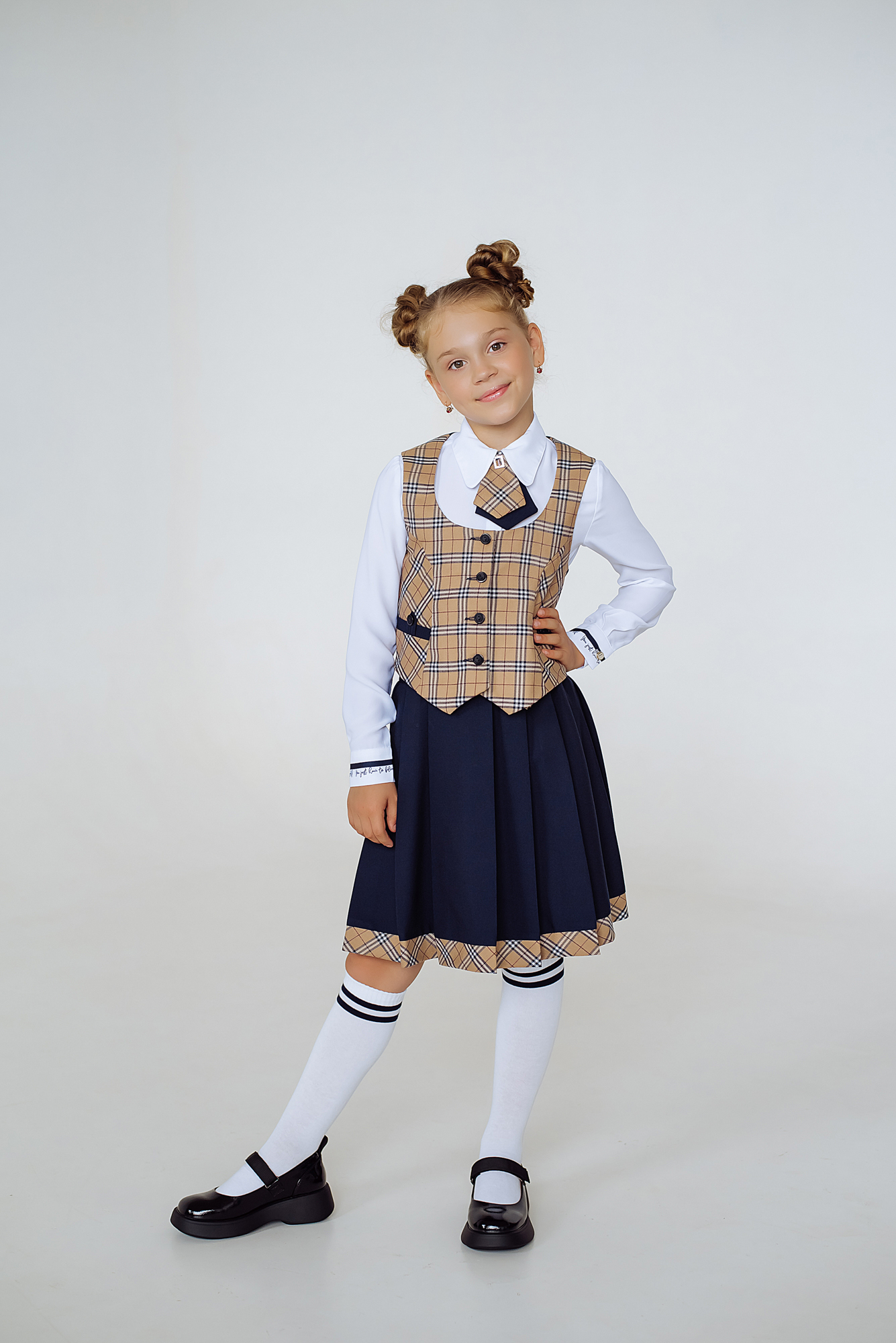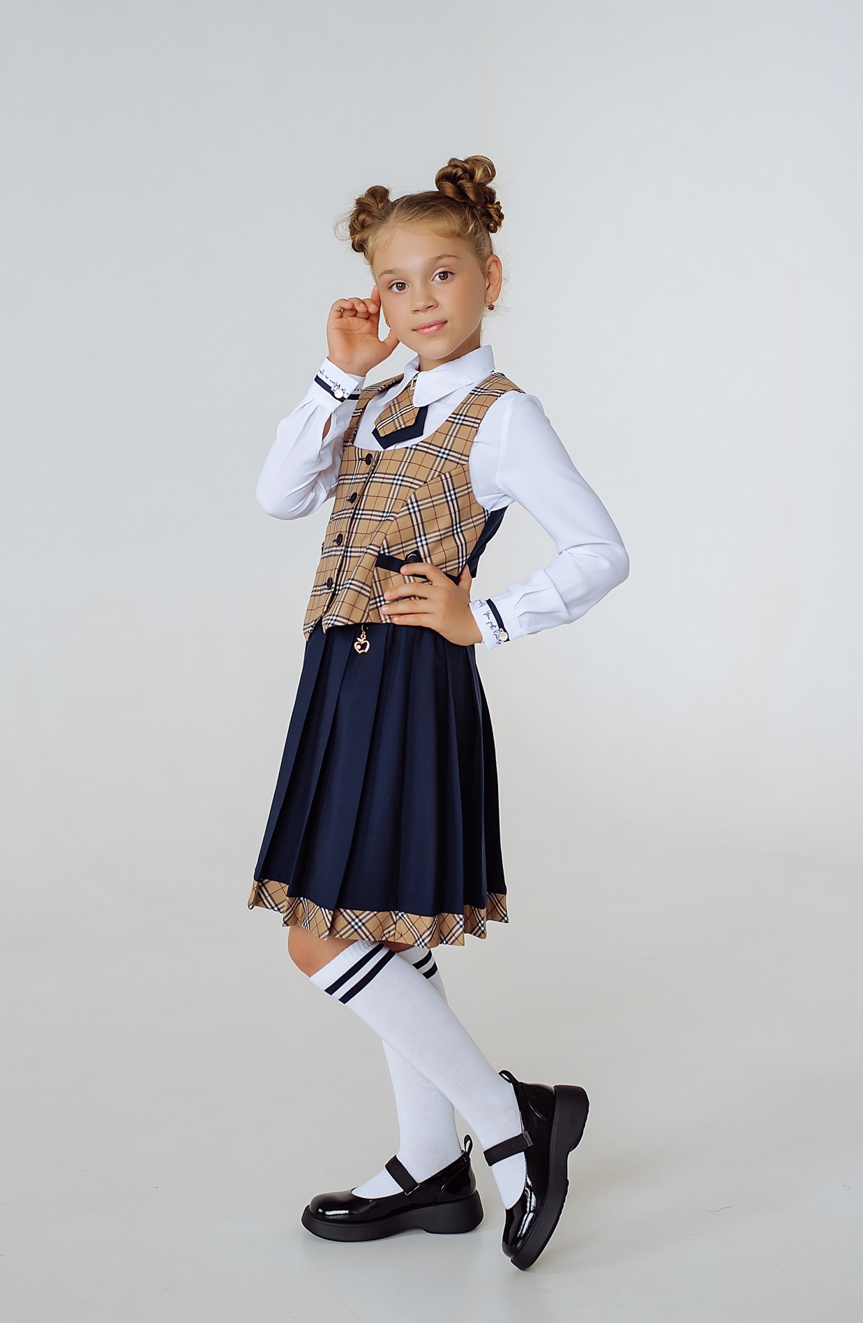 Юбка д/д третьего слоя Юника ткань турин син.-бежев.клетка лицей (р.34-36/134) -