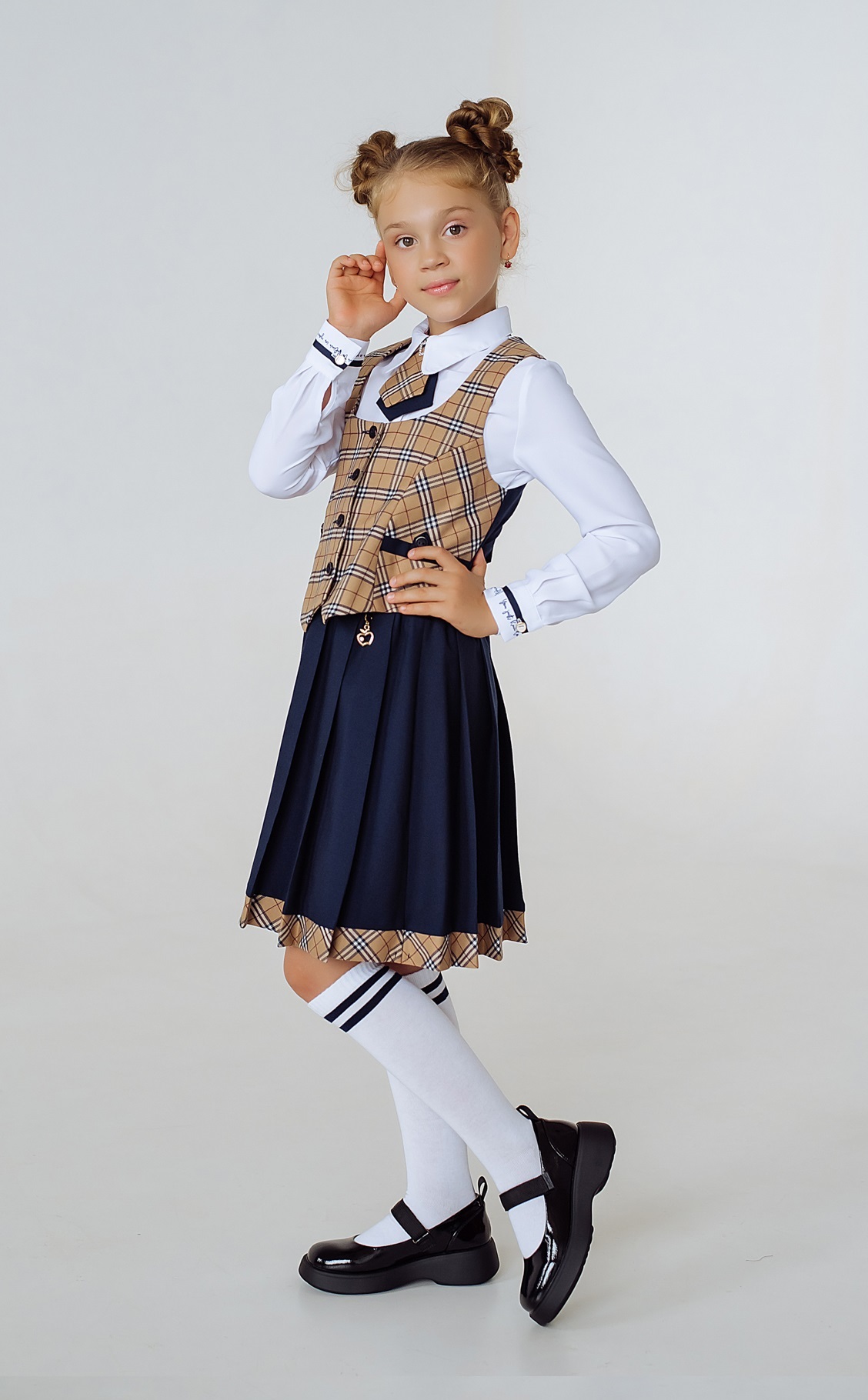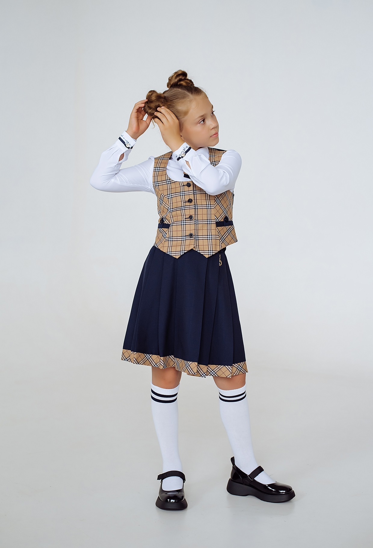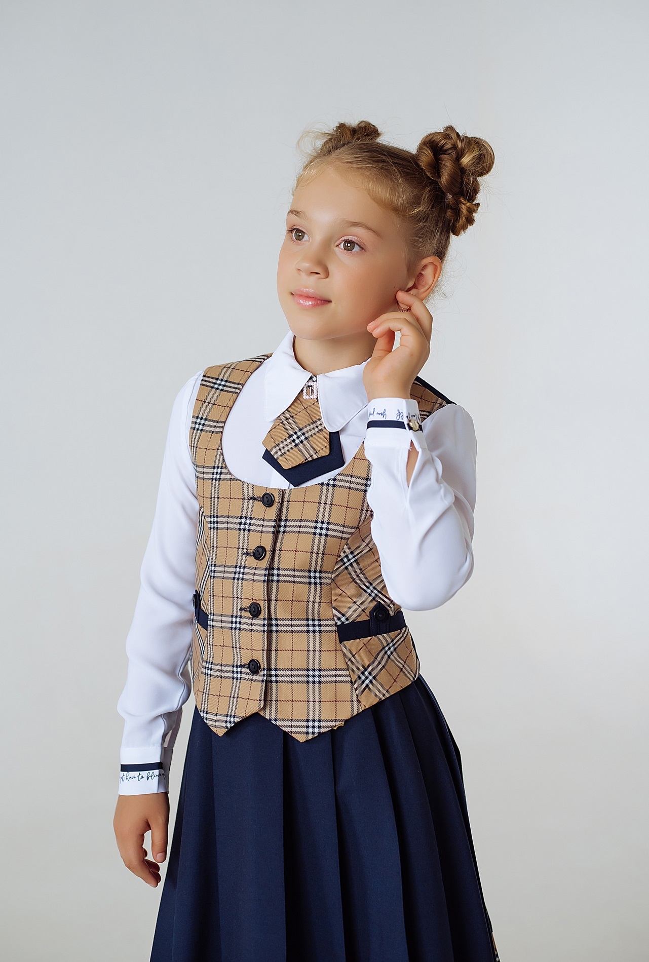 Жилет д/д третьего слоя Симфония ткань турин син.-бежев.клетка лицей (р.36-38/140) -