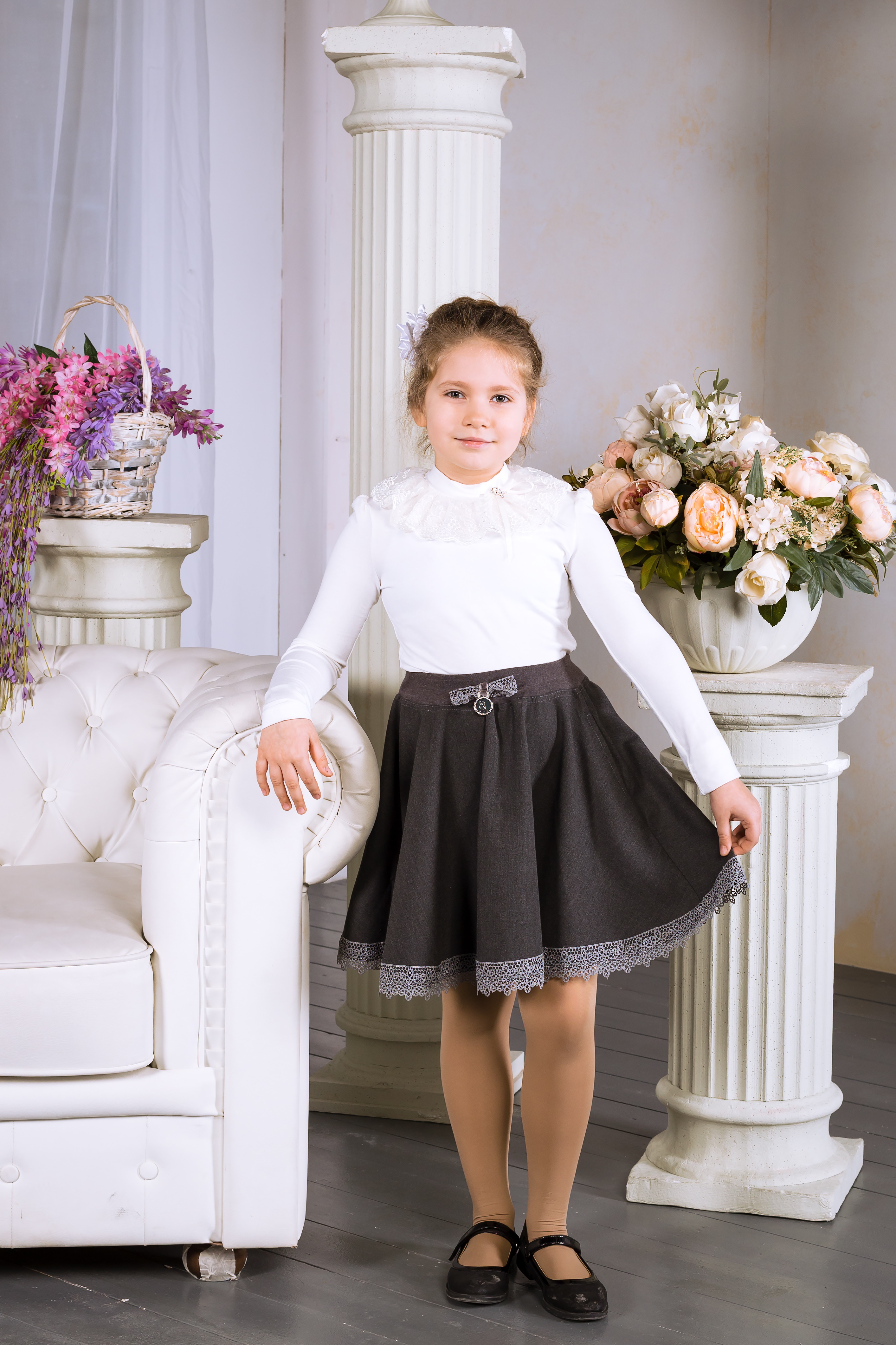 Блузка трикотажная д/д ,съемное жабо , кор.рукав. белый